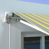 | Additional Information | ● Colour: Yellow and Grey ● Materials: 280 GSM Polyester, Aluminum, Metal ● Overall Dimensions: 116.9" W x 78.7" D (297 x 200 cm) ● Crank Handle: 59.1" L (150 cm) ● Power Cord Length: 4.4 ft (1.35 m) ● Recommended Installation Height: 8.2-11.5 ft (2.5-3.5 m) ● Rated Voltage: AC 110V-240V, 50/60Hz ● Wind Proof Level: 2 ● Item Label: 840-266V81MX |