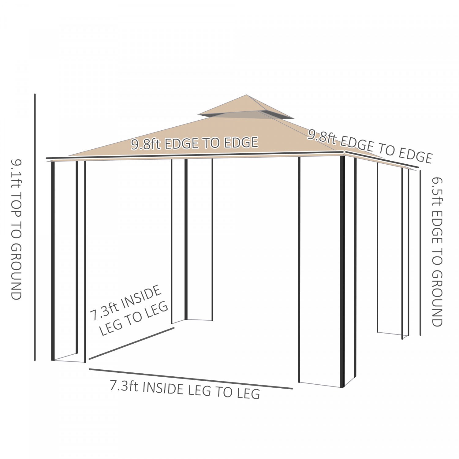 Outsunny 10x10ft Patio Gazebo Outdoor Double Top Pavilion Canopy Garden Event Party Tent Shelter Yard Sun Shade Steel Frame W/ Mosquito Netting