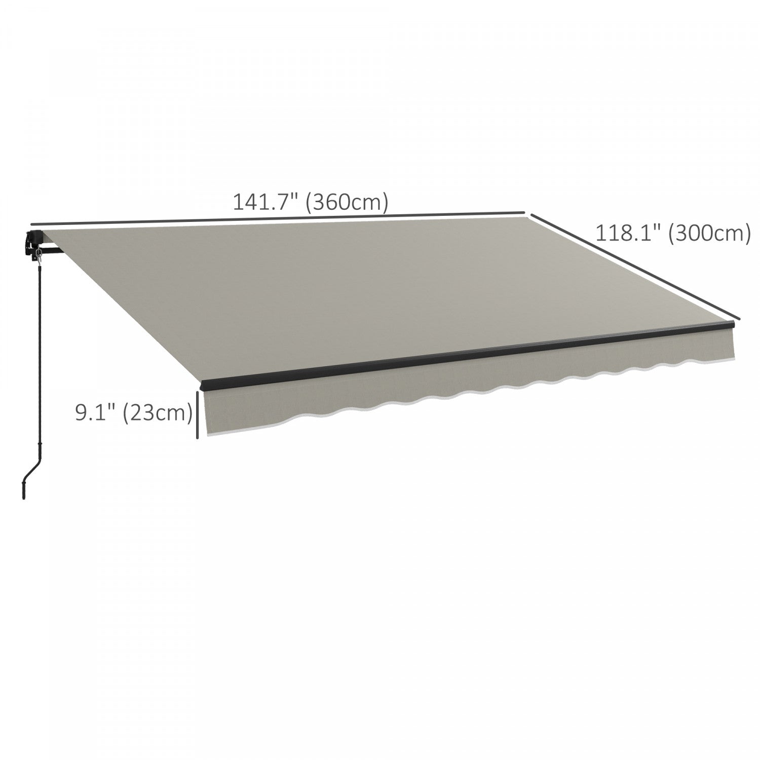 Outsunny 12' X 10' Retractable Awning, Patio Awning Sunshade Shelter With Manual Crank Handle, 280gsm Uv Resistant Fabric And Aluminum Frame, For Deck, Balcony, Yard, Light Grey