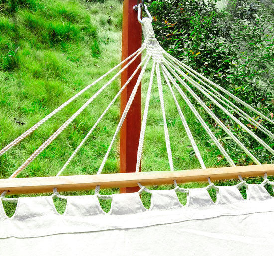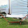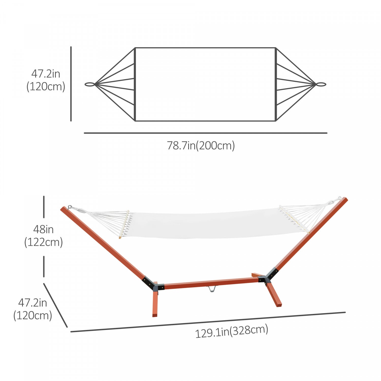 Outsunny 130" X 47" Hammock With Stand, Outdoor Hammock Camping Bed, Freestanding Lounge Chair With Wooden Frame Cotton Fabric For Outdoor Indoor, White, Teak
