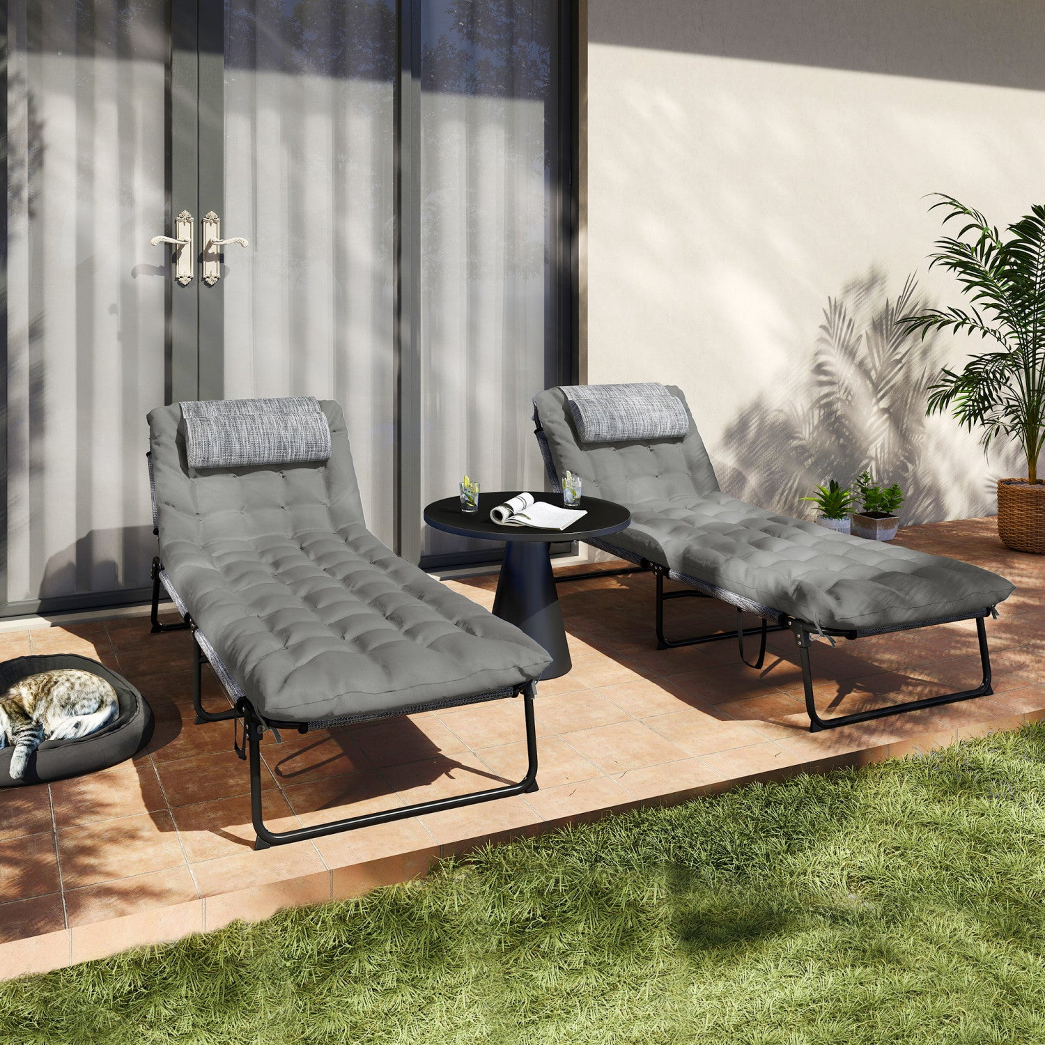 Outsunny 2 Pcs Folding Lounge Chairs, Reclining Tanning Chairs, Grey