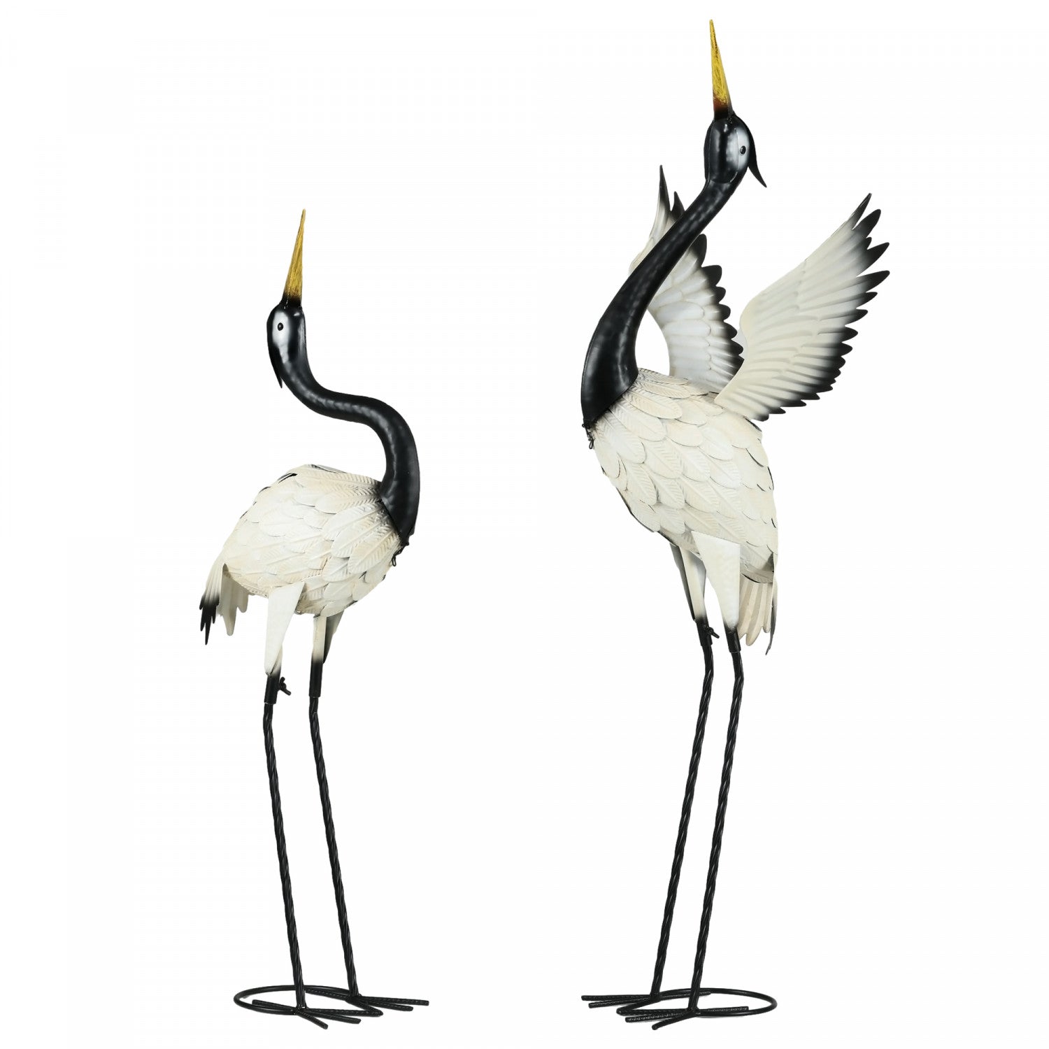 Outsunny 2pcs Heron Garden Statues Metal Yard Art Bird Sculptures, White