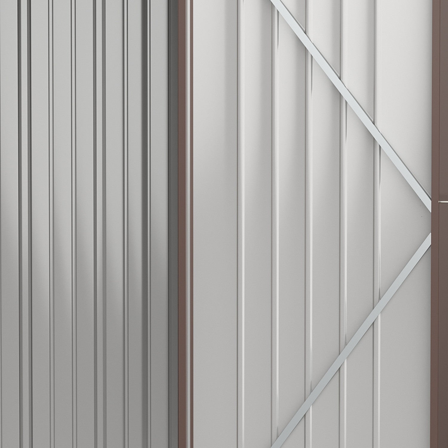 | Key Features | ● Large room can store garden tools, lawn care equipment, pool supplies, and more ● Steel structure and galvanized finish are sturdy and anti-rust for reliable daily use ● Sloped roof will help rainwater to drain quickly ● Lockable door ensures more security of your items ● Floor foundation is not included ● Assembly required |