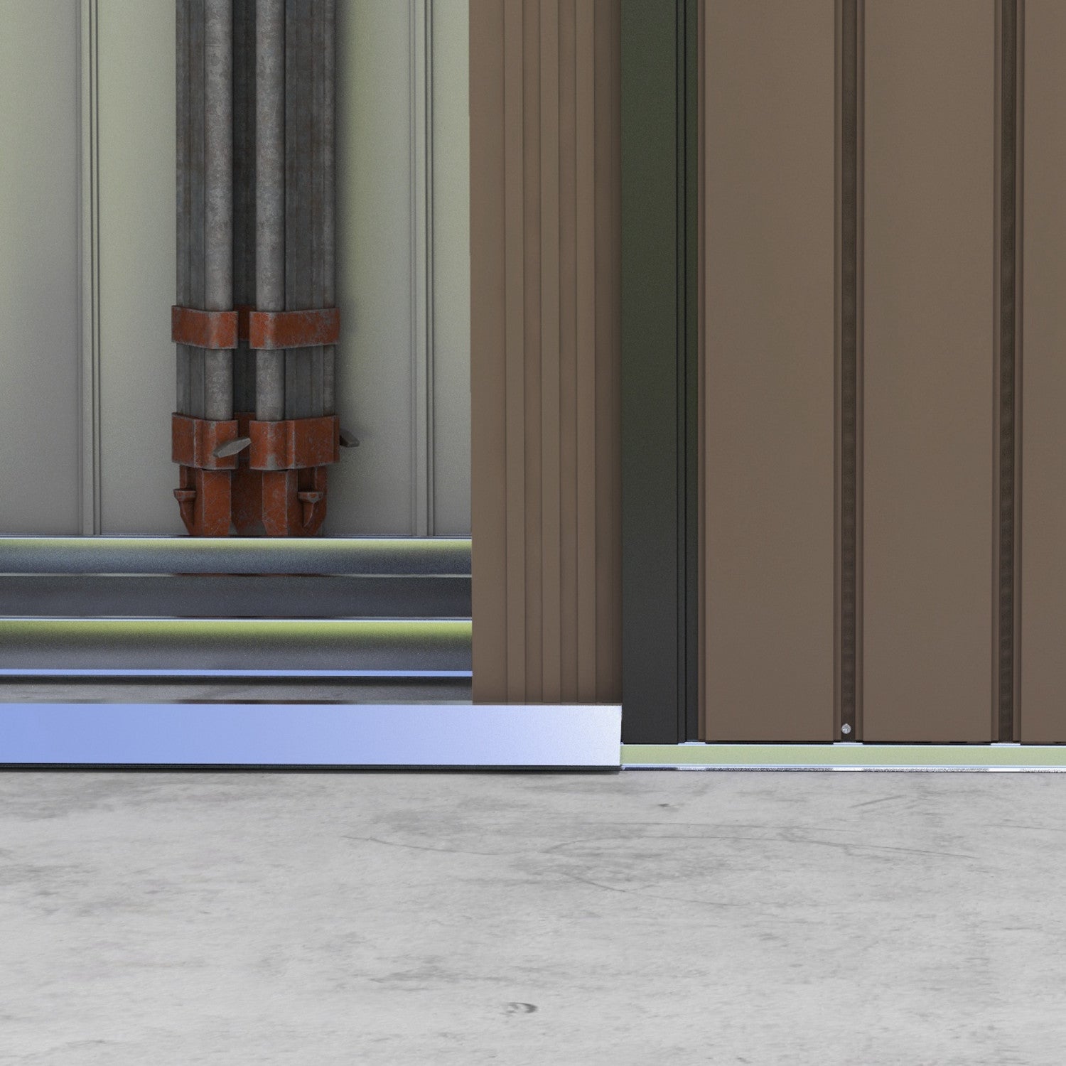 | Key Features | ● Ample storage space for garden tools, lawn care equipment, supplies and more ● Heavy duty construction with reinforced ridged walls and a foundation kit ● Built with the finest galvanized steel ● Sloped roof prevents moisture and resists bad weather ● Double sliding doors for easy access and save space for more storage ● 4 vents for increased lighting and airflow ● Maintenance free and corrosion resistance ● Assembly required |