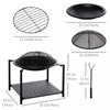 Outsunny 74cm Outdoor Fire Pit With Screen Cover And Storage Shelf, Wood Burning Fire Bowl With Poker For Patio, Backyard, Black