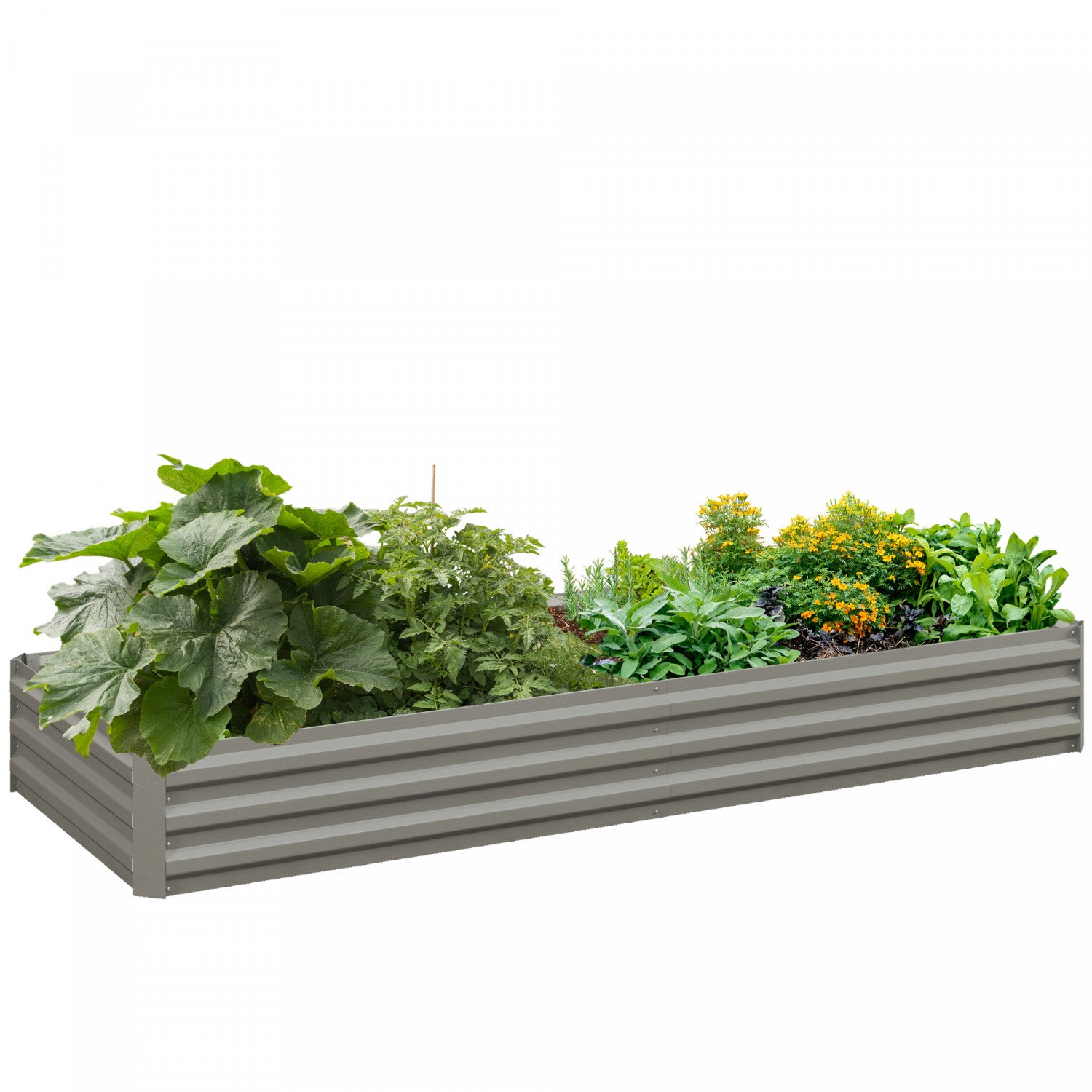 Outsunny 8 X 3 X 1ft Galvanized Raised Garden Bed, Metal Elevated Planter Box, Easy Diy And Cleaning For Growing Flowers, Herbs, Succulents, Silver