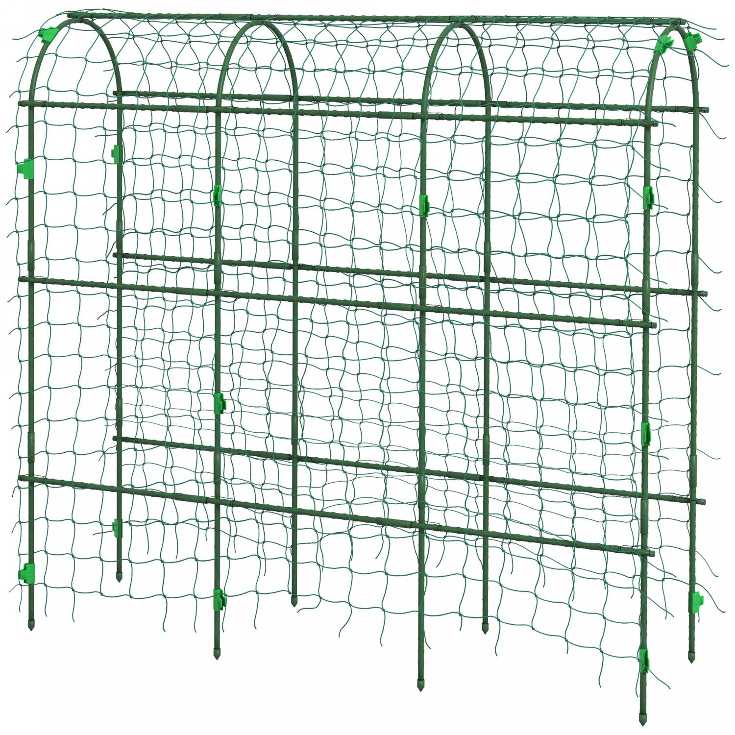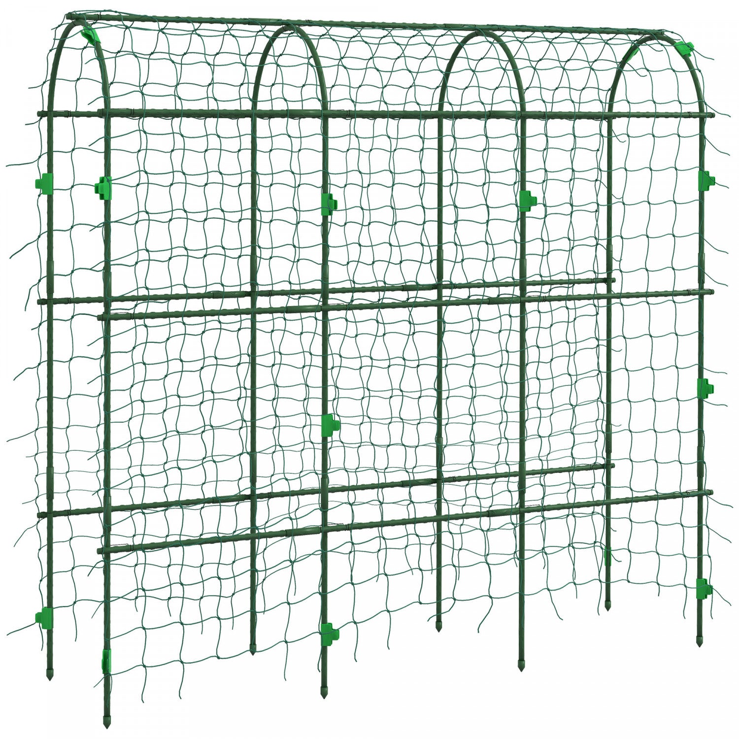 | Key Features | ● For various vine plants, keeping your garden tidy ● With an accompanying net for additional climbing support ● The sharp bottom legs ensure that the trellis can insert into the soil easily ● Made from steel pipe covered in plastic, it can bear heavy loads and be used repeatedly ● Hassle-free assembly |