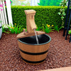 Outsunny Outdoor Waterfall Fountain, Garden Wood Barrel, Carbonized