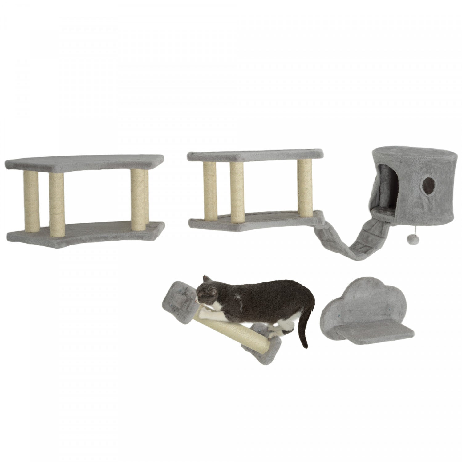 Pawhut Cat Wall Shelves, 4pcs Cat Shelves With Scratching Post, Jumping Platforms, Ladder, Condo, Ceiling Wall Mounted Cat Climber, Light Grey