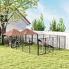PawHut Outdoor Dog Kennel with 2 Rooms, Heavy Duty Dog Run with Rotating and Adjustable Height Bowls, Waterproof UV-Resistant Cover for Large Breeds, Ducks, 13.5' x 9.5' x 5'
