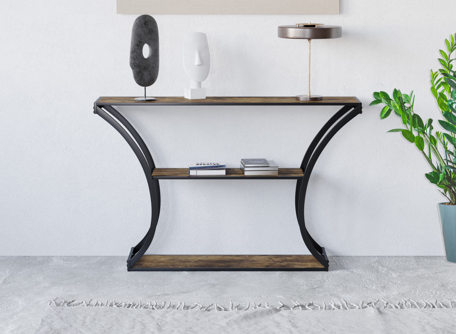 Bring warmth, charm, and versatility into your home with this beautifully crafted console table—designed to suit any room and every purpose. Whether placed in an entryway, behind a sofa, or along a hallway wall, it adds just the right touch of style while offering practical surface space. Its sleek, timeless design pairs effortlessly with any decor, from modern minimalism to cozy farmhouse charm. Perfect for holding your daily essentials like keys, mail, or notebooks, it also serves as a lovely display for plants, photos, candles, or lamps. Use it as a bar table for entertaining, a chic vanity setup, or a stylish side table in your living room or bedroom. Crafted with durability in mind, this console table is built to handle everyday use without compromising its elegant look. Compact yet functional, it fits beautifully into both small spaces and open layouts. Let this console table become a subtle but stunning centerpiece in your home—where style meets everyday living.