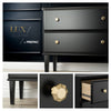The Prepac Lux 2-Drawer Nightstand combines elegance and functionality, featuring a sophisticated black finish, gold hardware, and sturdy wood legs. With two spacious drawers and a versatile design, it’s perfect for organizing essentials in any room while adding a touch of style.