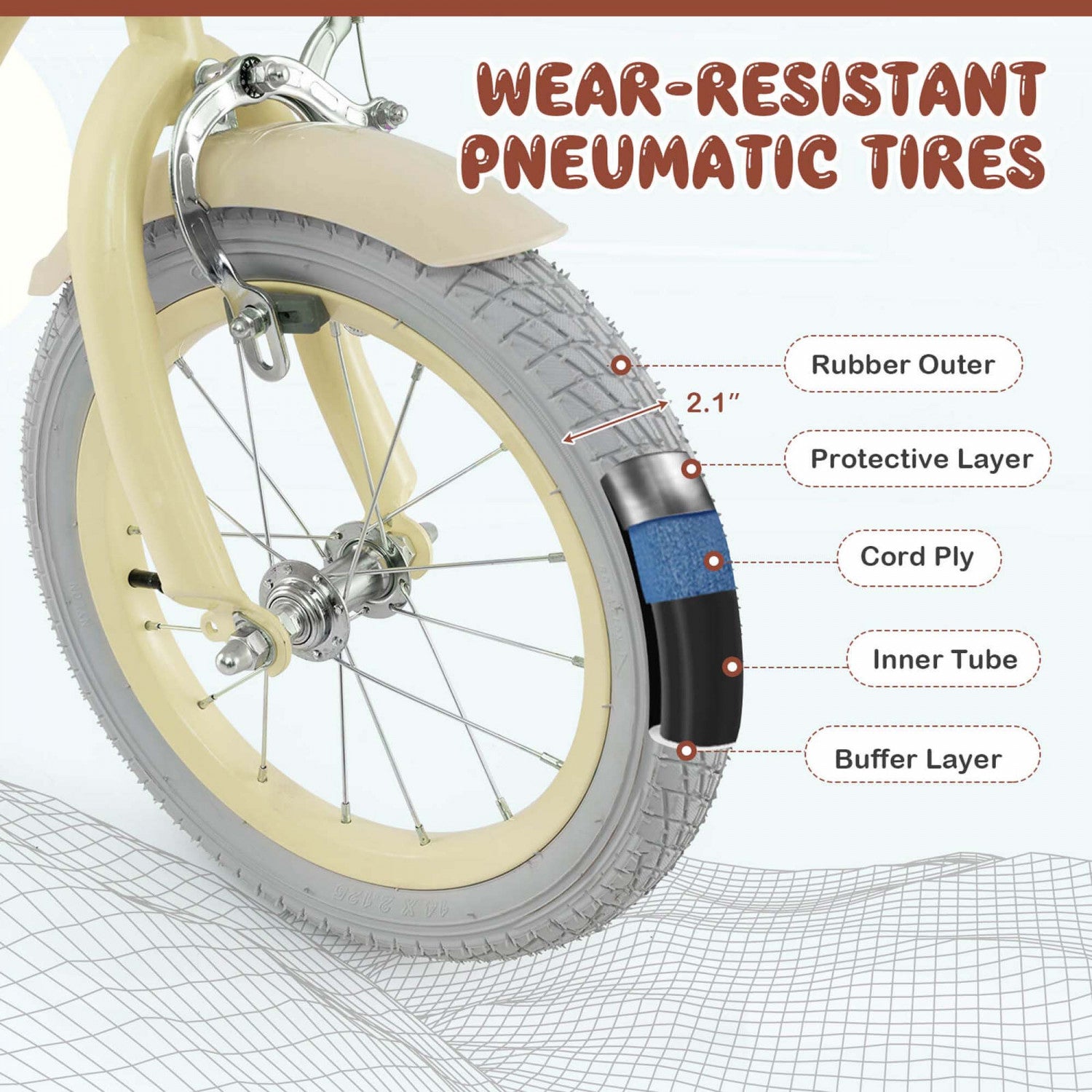 Prorider 14" Kid's Bike With Removable Training Wheels & Basket For 3-5 Years Old Beige