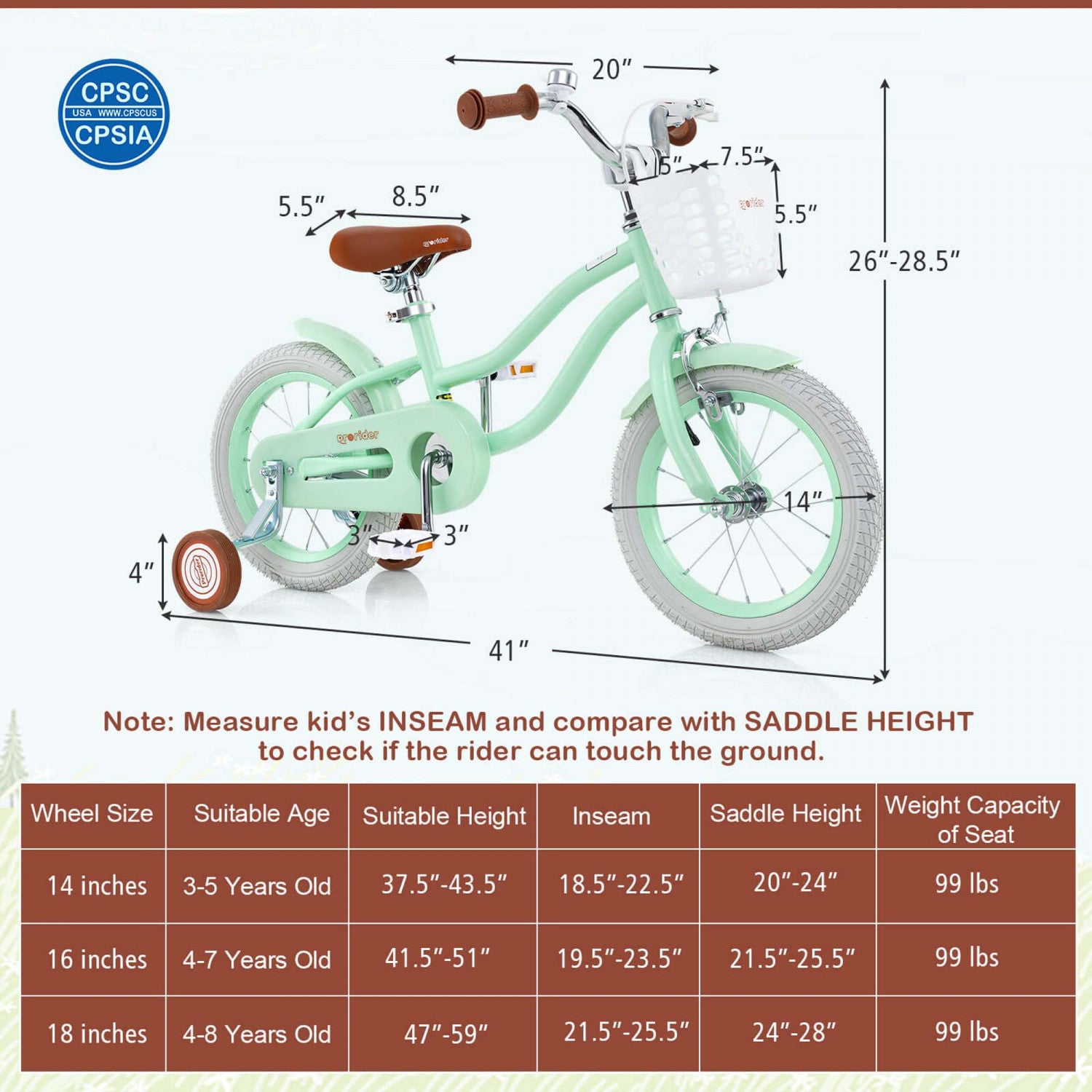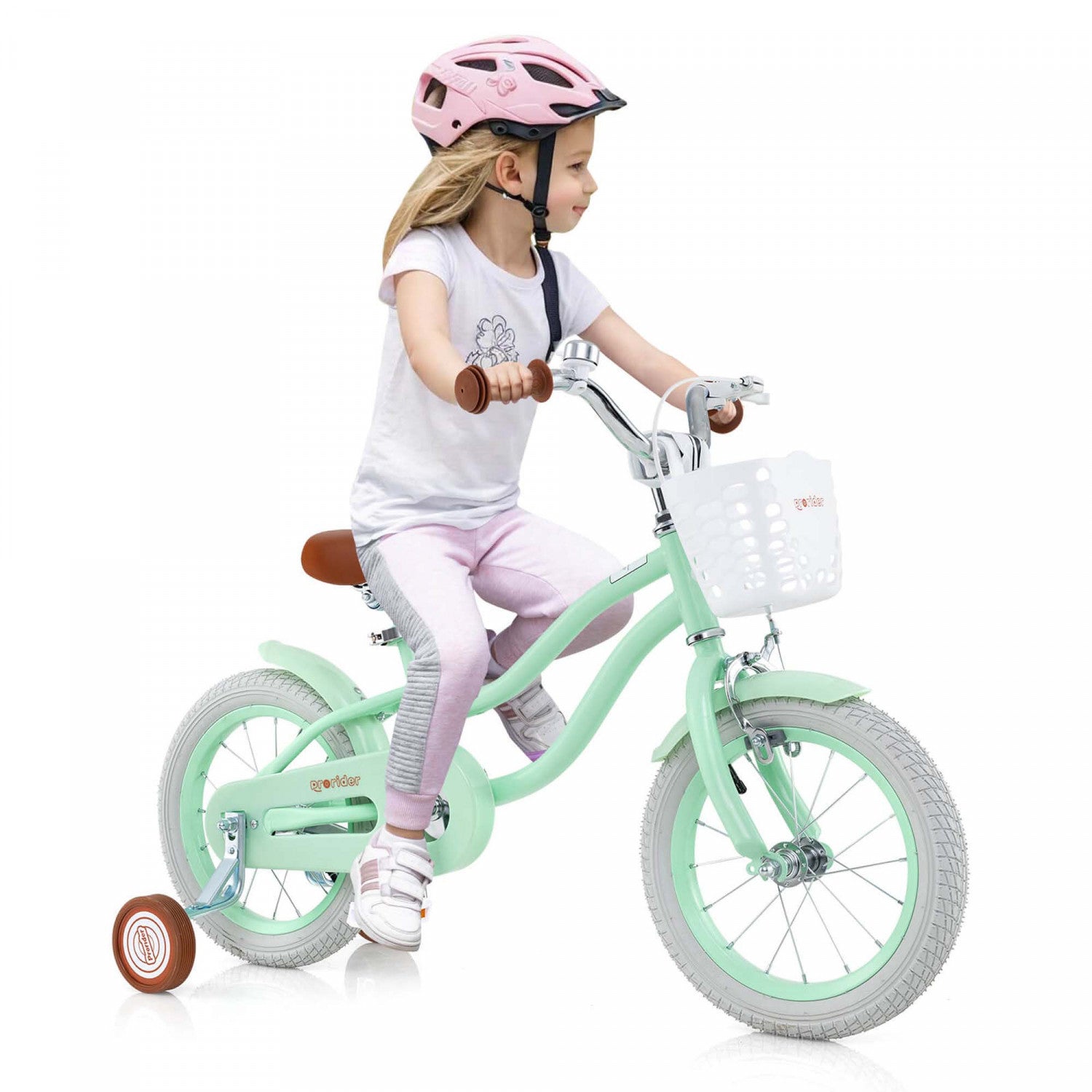 Prorider 14" Kid's Bike With Removable Training Wheels & Basket For 3-5 Years Old Green
