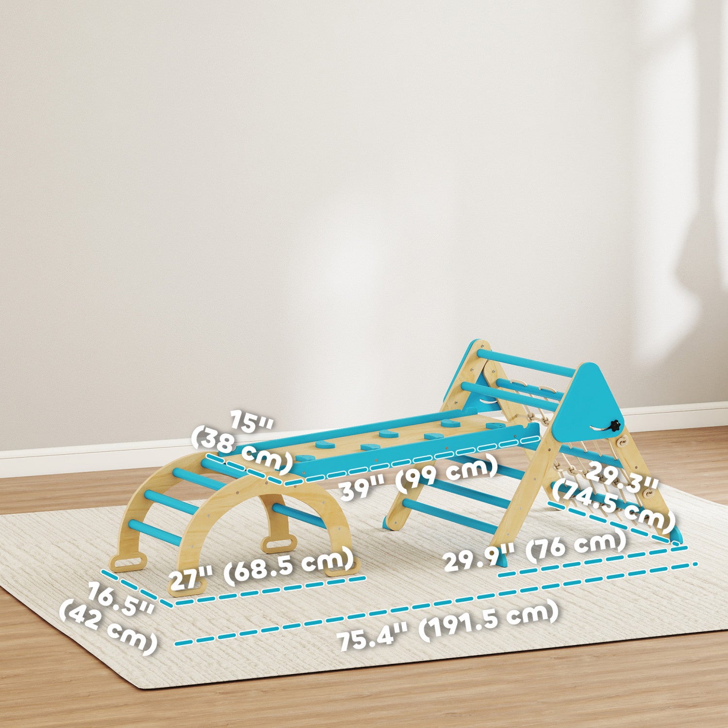Qaba 8-in-1 Pikler Triangle Set, Foldable Wooden Climbing Toys with Arch, Ramp and Ladder, Montessori Indoor Playground Jungle Gyms for Toddlers Ages 18-48 Mouths, Blue