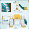Qaba 8 in 1 Slide and Swing Set with Basketball Hoop, Climber, Toddler Slide Set Indoor Playground with Aisle, Steering Wheel, Storage Space, Telescope, for Aged 1-3 Years, Yellow