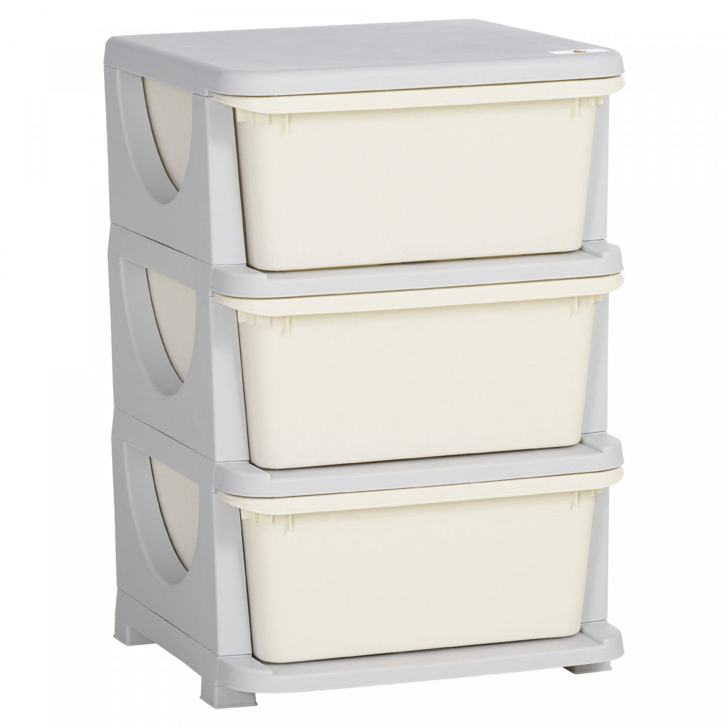 Qaba Kids Toy Storage Organizer With 3 Plastic Bins, 3 Tier Drawer Chest Utility For Kids Bedroom Nursery Kindergarten Living Room For Boys Girls Toddlers, Cream White