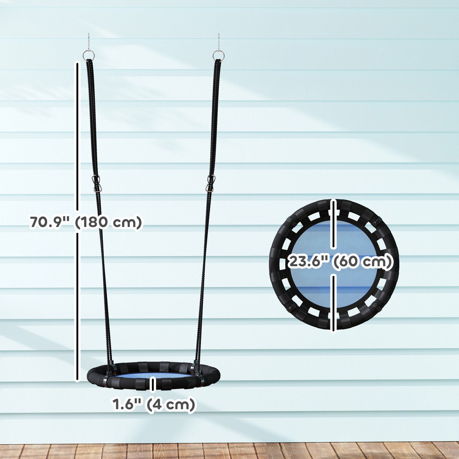 Qaba Saucer Tree Swing Set for Kids, 24 inch Round Flying Swing Seat with Adjustable Hanging Ropes, 154 lbs Weight Capacity Children Net Swing for Outdoor, Backyard, Blue