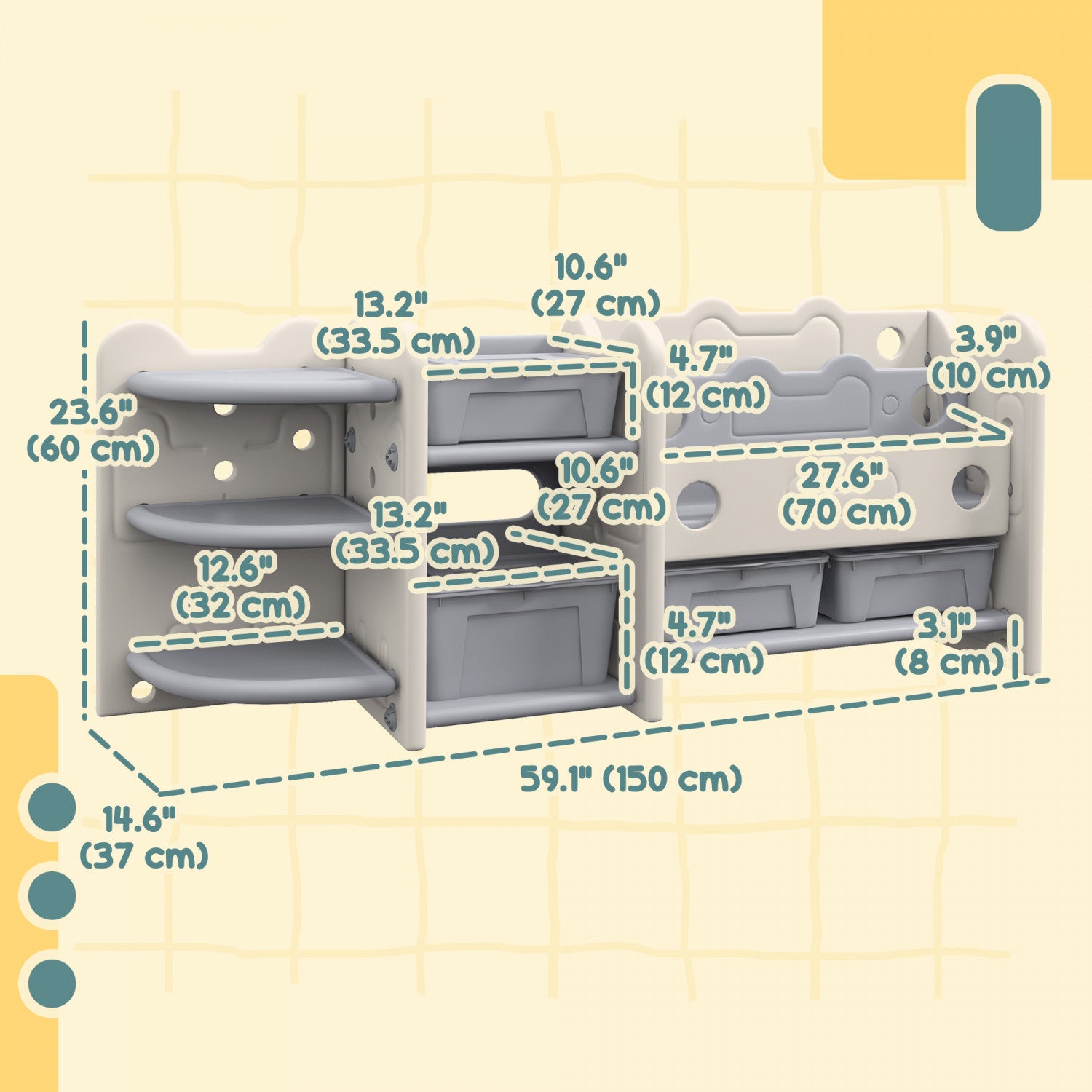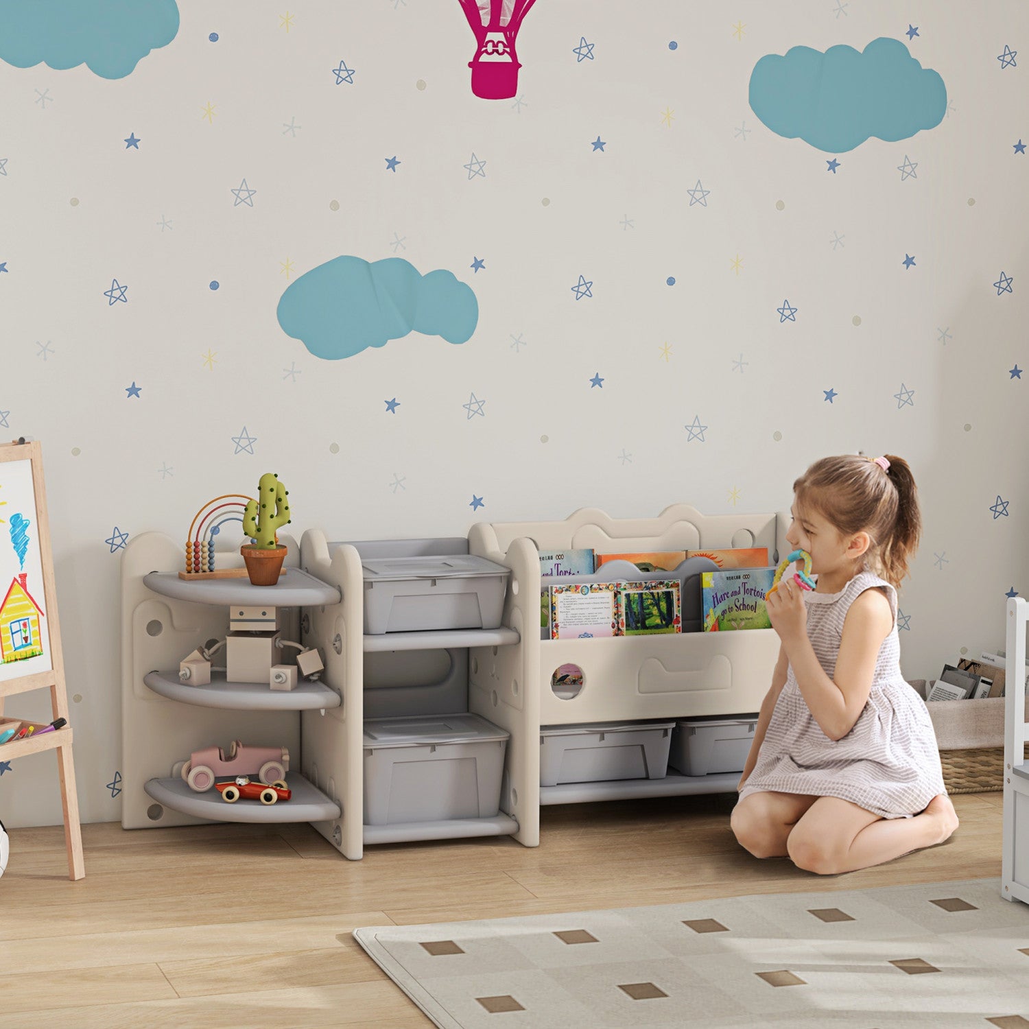 Qaba Toy Storage Organizer With 4 Storage Boxes, Bookshelves, Storage Racks, Toy Organizer For Nursery, Kids Room, Playroom, Cream White