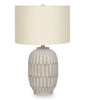 Bring some transitional style sophistication to any room with this eclectic 24"h table lamp. A beautiful blend of a textured cream resin vase-shaped base, a simple ivory linen drum shade, and finished with a gold metal finial on top, this lamp is a great way to brighten any bedroom, living room or office. With a 3-way switch that houses a single bulb (not included) for a maximum output of 100W/120V, this lamp offers three levels of illuminating light for creating the ambiance you desire. Attached with a 5ft transparent cord, this is the perfect functional accent to place on an end or side table, nightstand or bedside table. Made with quality materials, this lamp includes a 2-year limited warranty against any manufacturer's defects for a worry-free purchase.