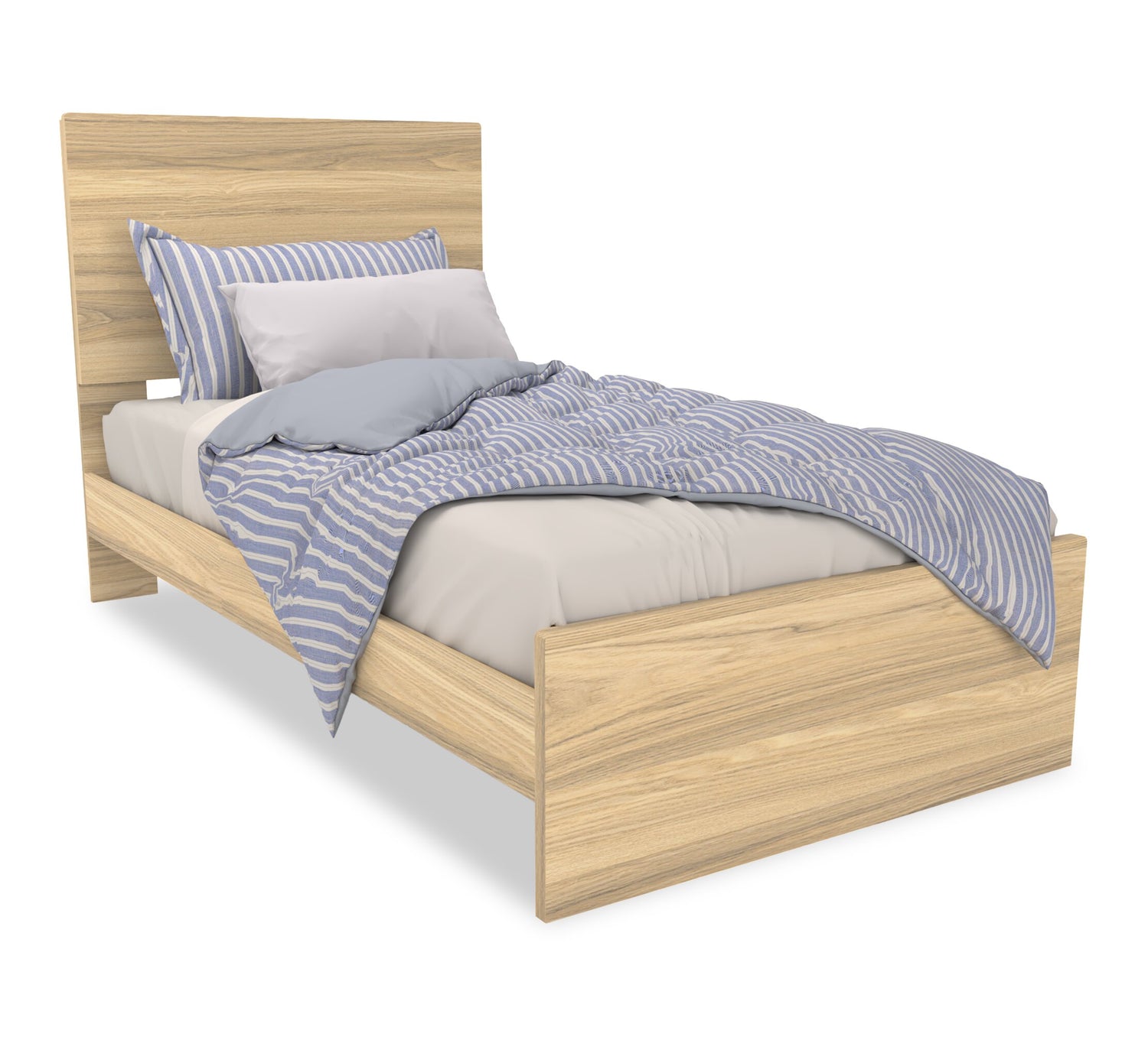 Riley Panel Bed with Headboard & Frame for Kids, Made in Canada, Natural - Twin Size