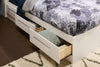 Storage Options | Three under-bed drawers, three headboard cubbies and a spacious surface on top of the headboard. |