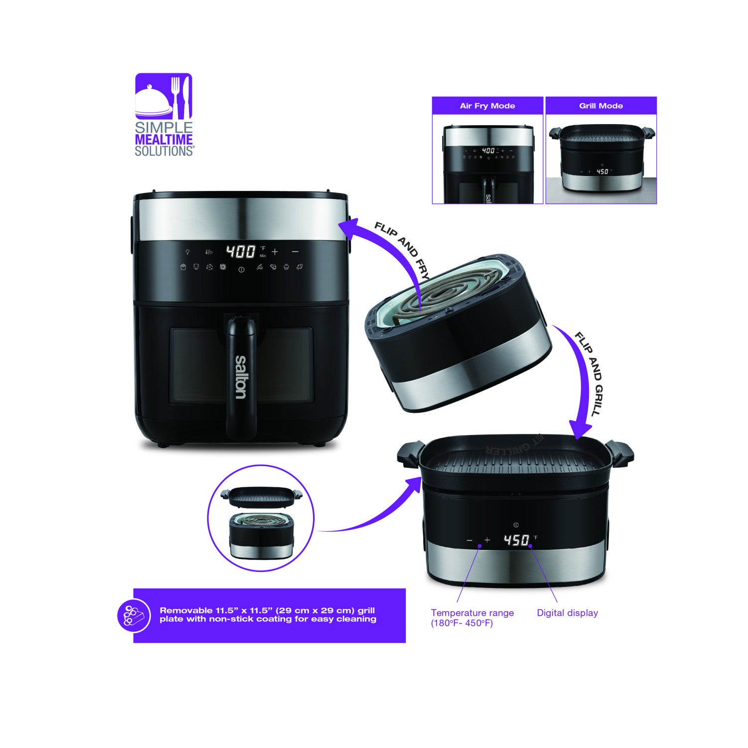 Salton 3-in-1 Air Fryer, Grill & Dehydrator Convection Toaster Oven