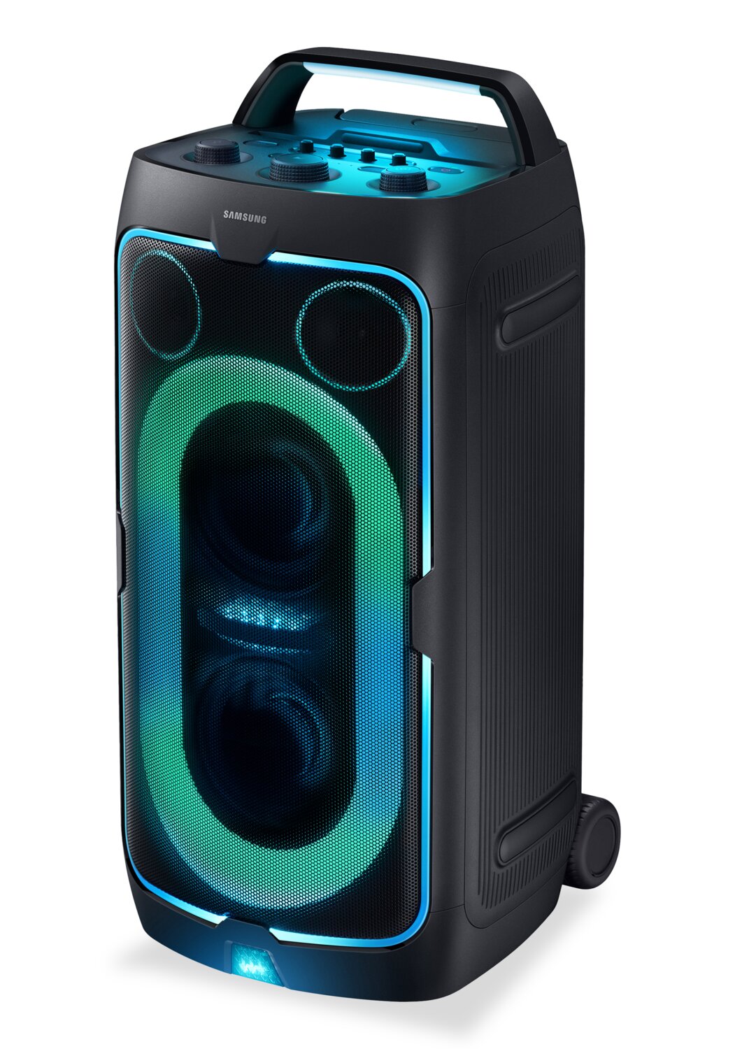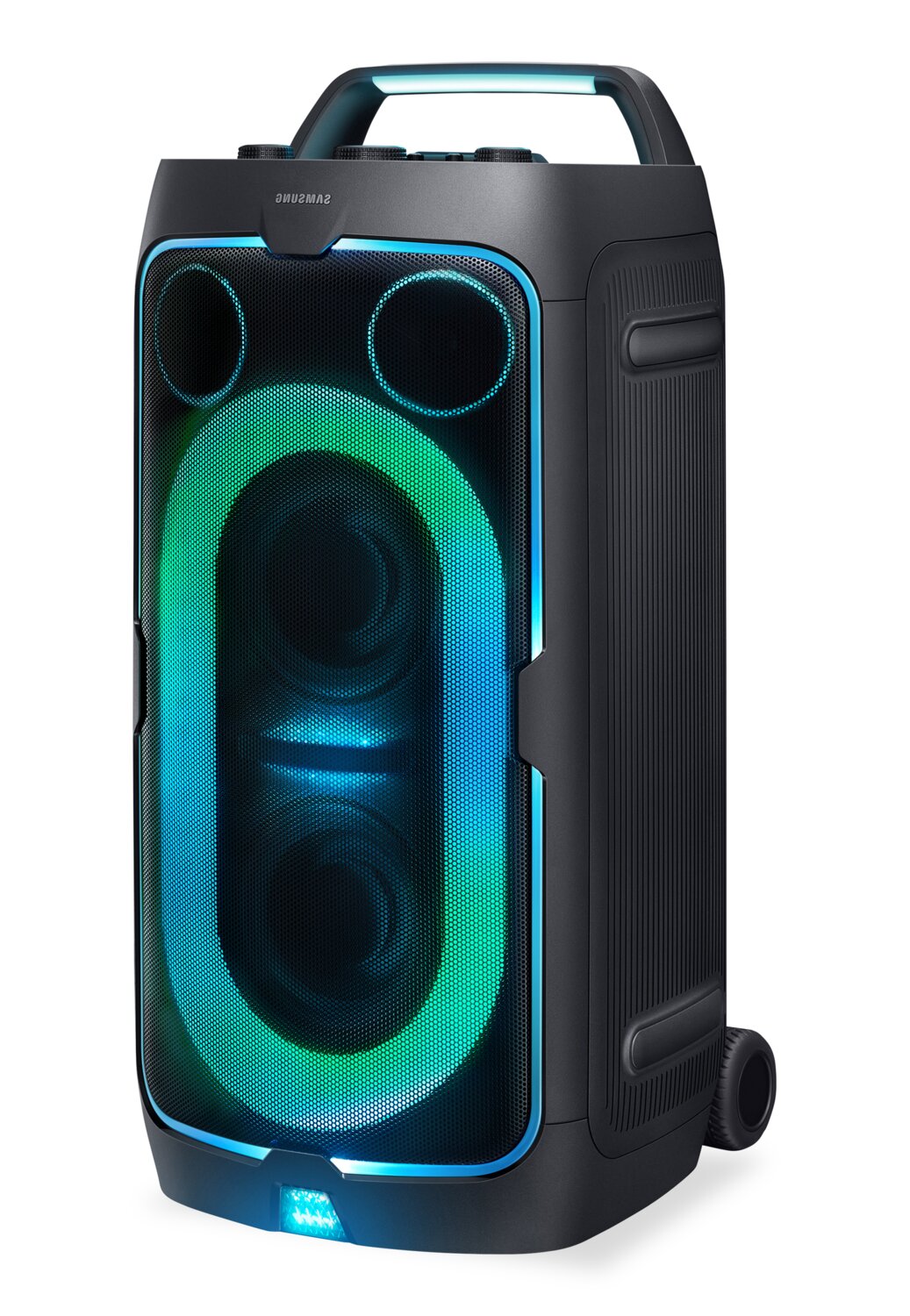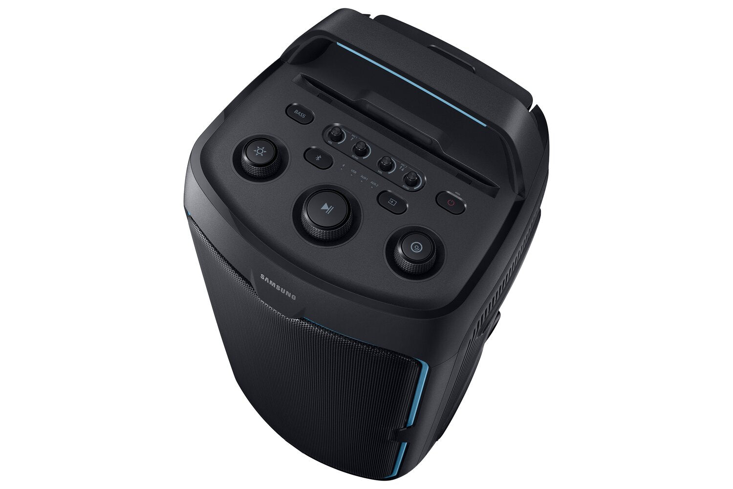 Powerful Party Sound: Party Lights+: Up to 18 Hours of Playtime: Portable Design: Jam Session: Bass Modes: Waveguide: Samsung Sound Tower App: |
