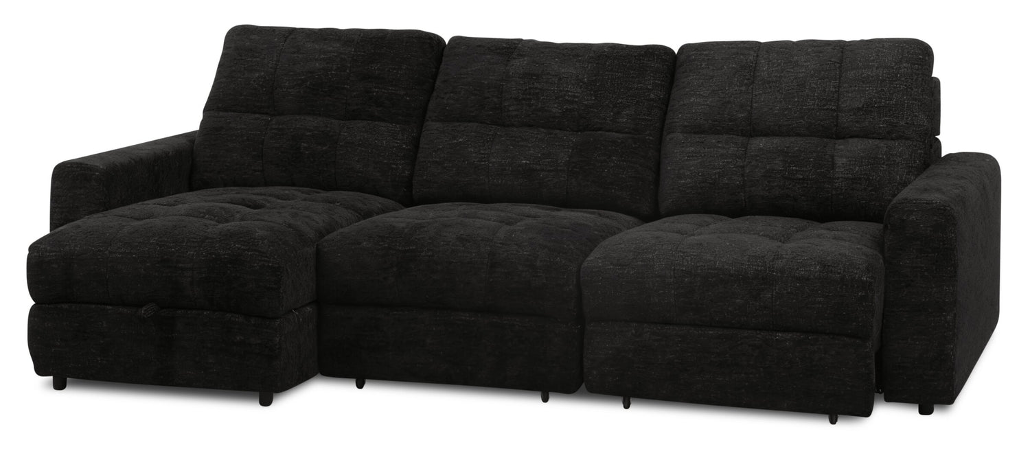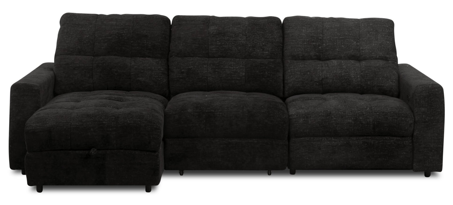 Transform your space with this Elevate three-piece sectional. Featuring a modular design with sliding chairs and a storage chaise, this piece will surely be a unique addition to any home. Constructed with comfortability in mind, it’s swathed in soft chenille fabric, boasts high-density foam cushions and features power sliding chairs. With a quick press of a button, you can stretch out your legs and let relaxation wash over you as you enjoy your favourite film or show. Allow the Elevate to become your new versatile and comfortable companion at home.