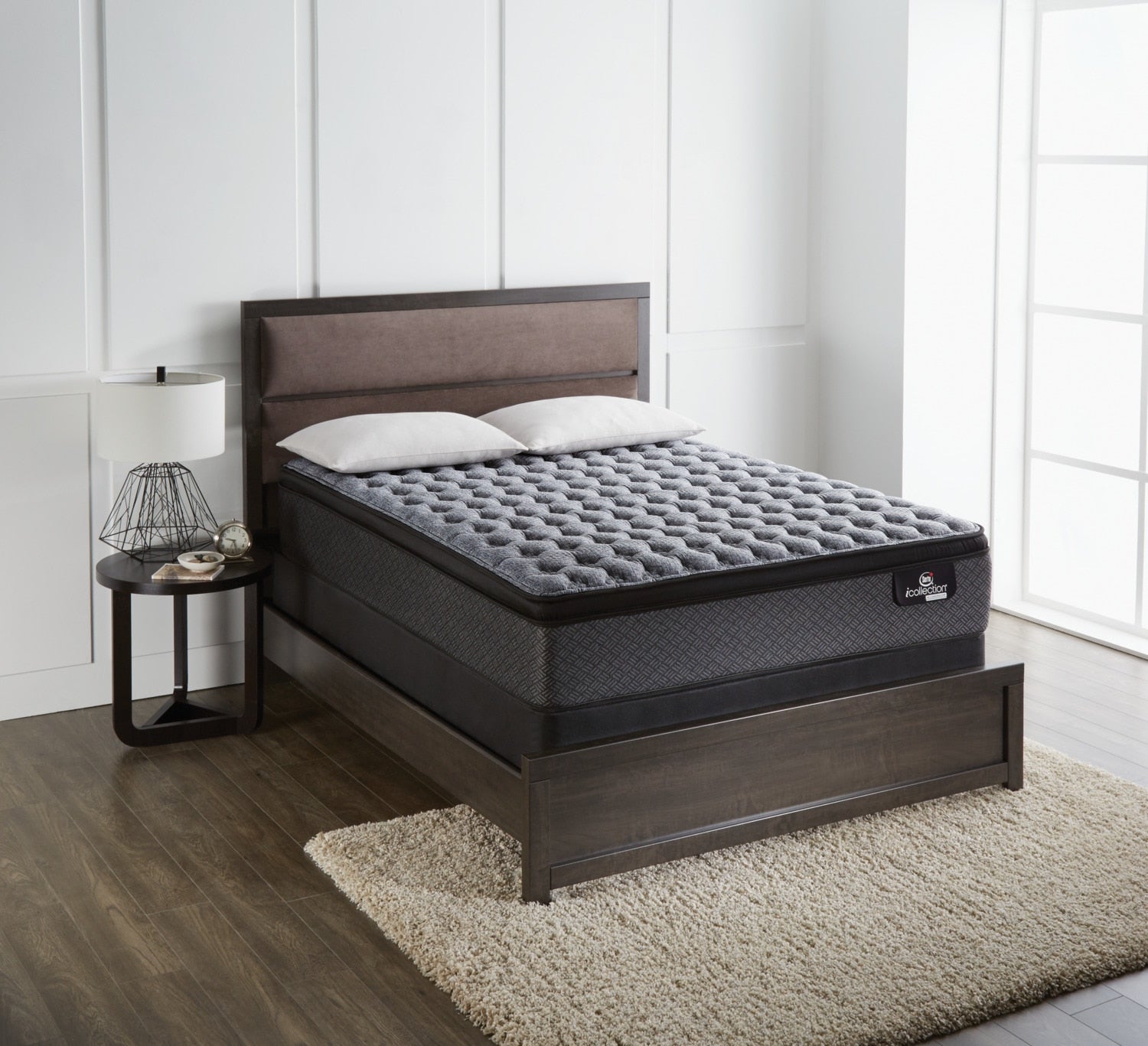 Create a cozy haven to relax on with this Serta iCollection Senna Euro-top firm king mattress set. Pocket coils in the centre-third of this bed are made with thicker steel to keep your spine in proper alignment. Meanwhile, luxurious GelSoft® fibres work with Cool Twist® gel foam to pull heat away from your body so you can stay cool throughout the night. If sore muscles and joints are your issue, the Active Response™ latex will release your pressure points so you can wake up refreshed for the day ahead.
