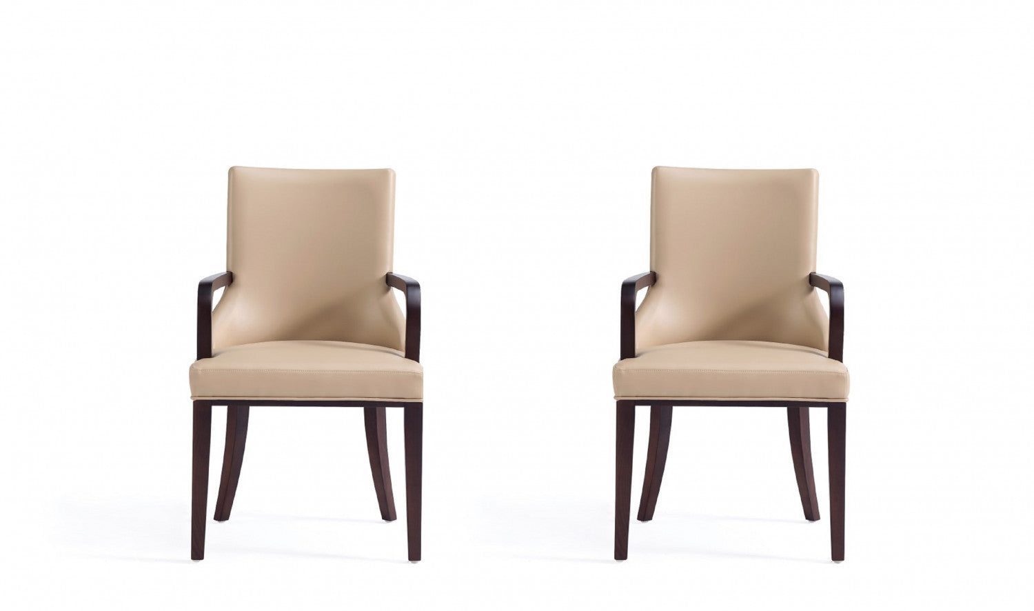 Shubert Modern Wood Vegan Leather and Velvet Armchair in Tan - Set of 2