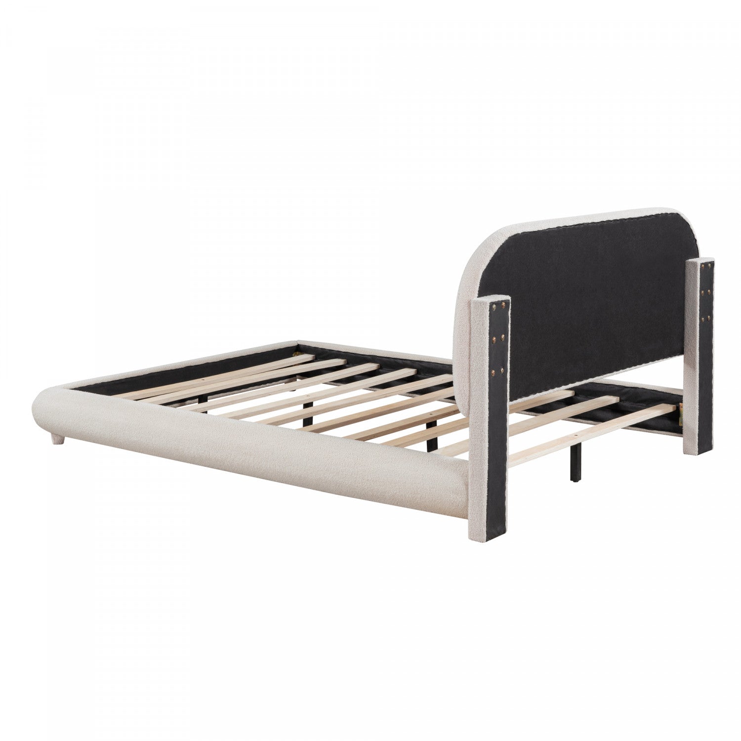 Sophie Teddy Fleece Upholstered Platform Bed with Soft Fabric and Sturdy Frame,Queen Size,Beige Queen Bed