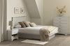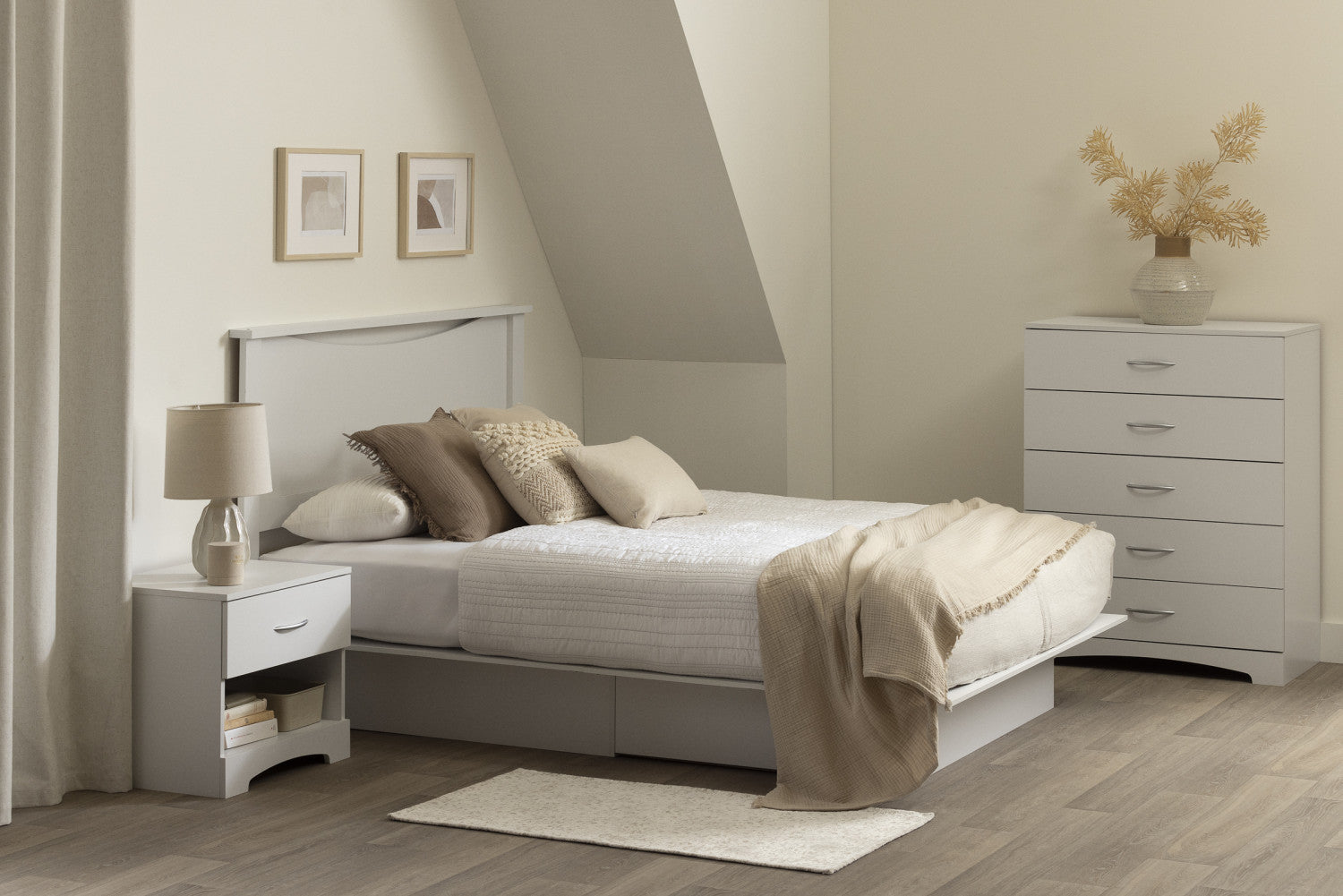 Contemporary lines and finish. This step one 5-drawer dresser has a timeless look and blends in easily with any decor. The contemporary lines are softened by the curved kick plate, and metal handles add character and value to the furniture. The neutral, modern style makes it suitable for men’s and women’s, providing plenty of storage space in this attractive piece of furniture. Practical storage and organization this bedroom furniture collection was designed just for tighter spaces! Featuring 5 practical drawers with metal handles, the dresser provides plenty of room for clothes, linens or general storage. The drawer slides are made of metal and include dampers and catches, creating a secure environment for babies and kids.