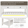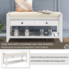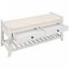 The shoe rack bench offers a stylish storage solution for busy entryways. Featuring a soft cushioned seat, two sliding drawers, and a bottom shelf for shoes or baskets, it keeps essentials organized and accessible. Crafted with pine wood and mdf, this multipurpose bench supports up to 220 lbs and includes matte black knobs for a refined touch. Ideal for small spaces and daily use. Simple assembly with a screwdriver required.