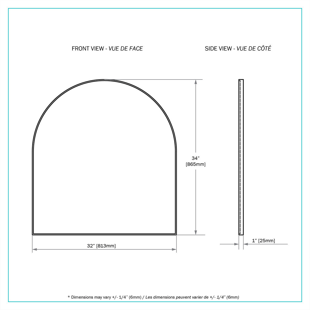 Width: 1" (2.5 cm) Height: 34.05" (86.5 cm) Depth: 32" (81.3 cm)