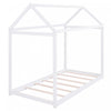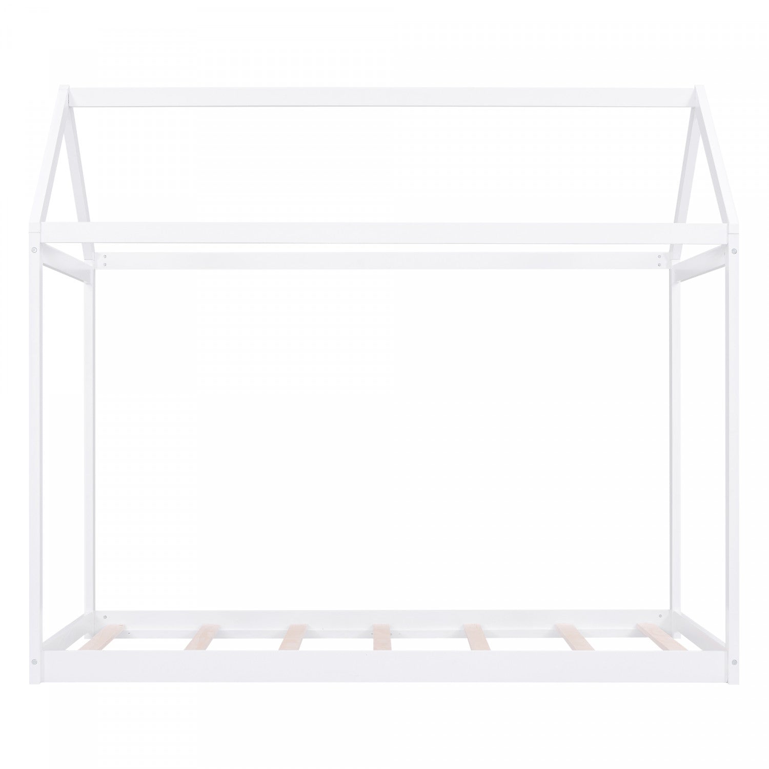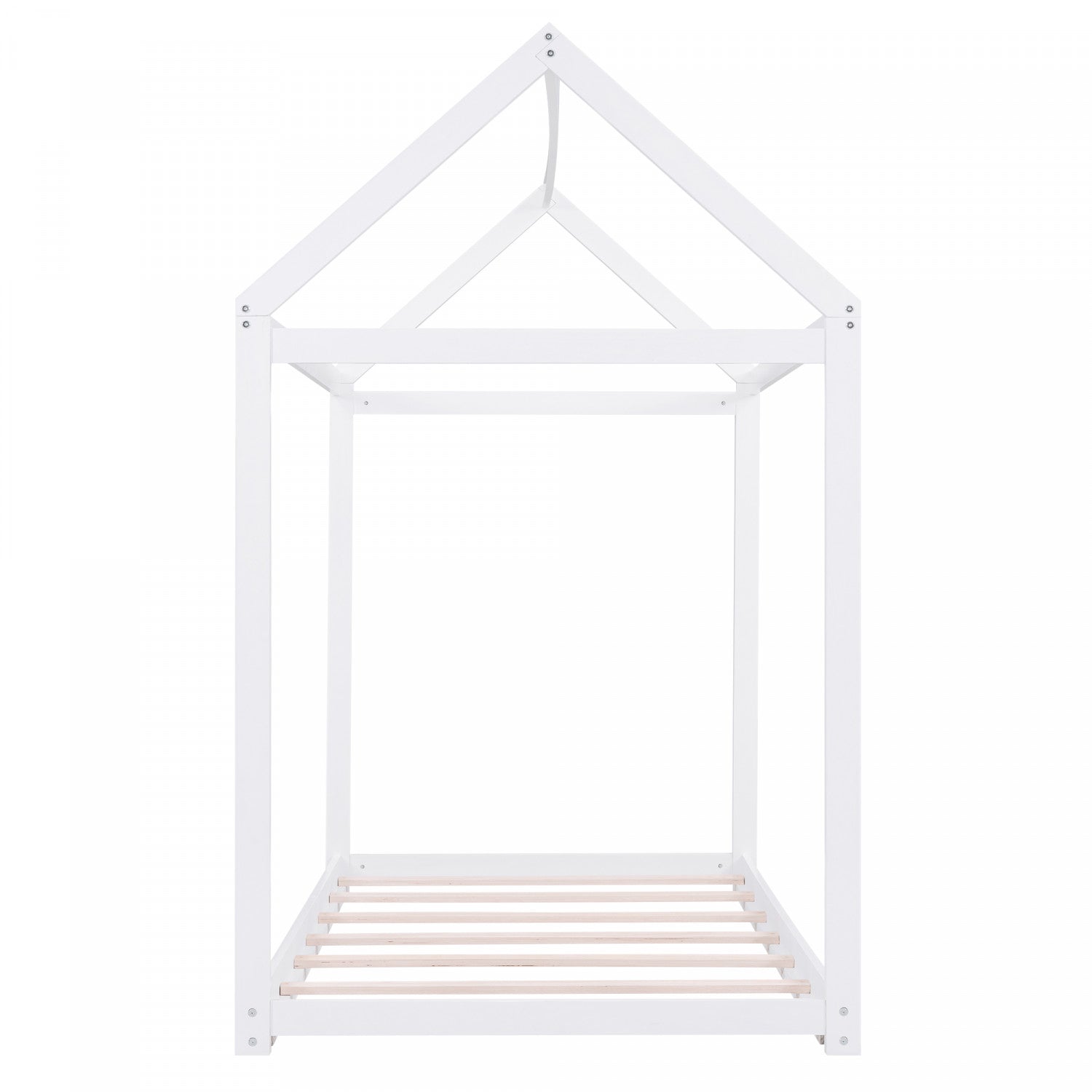 Create a playful and cozy sleep space with the twin size wooden house bed. Crafted from pine wood and engineered wood in a clean white finish, this charming bed features a roof-shaped frame that encourages imagination and creativity. The durable construction ensures long-lasting use, while flush-mount hardware keeps the look neat. Easy to assemble and perfect for any child’s bedroom.