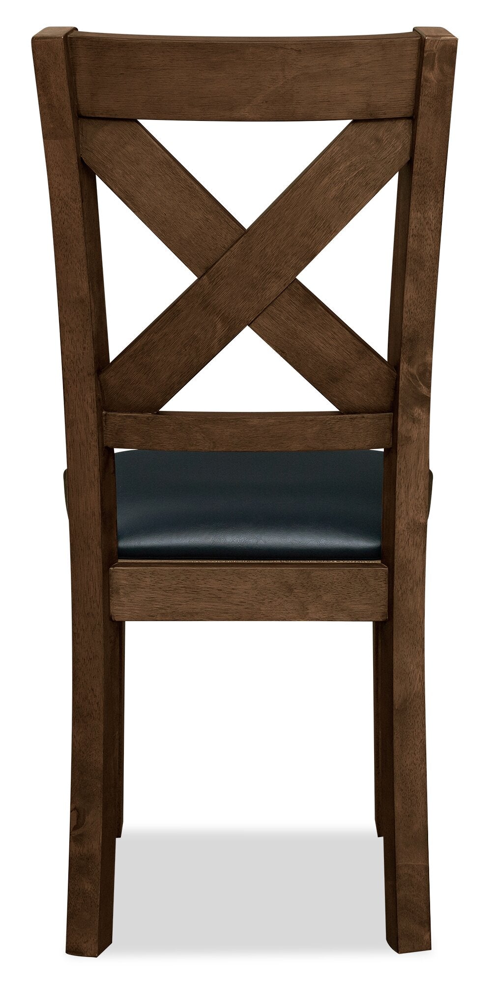 For a seat that will inspire you to slow down and relax at the table, look no further than the Talia dining chair. Padded generously with high-density foam, this soft seat is a treat for tired legs. The black faux leather upholstery is easy to clean and resilient against spills. But what your eyes will notice most is the attractive, X-shaped backrest. In this spot and throughout the hardwood frame, the radiant mango veneers offer an attractive lustre that infuses the room with contemporary style.