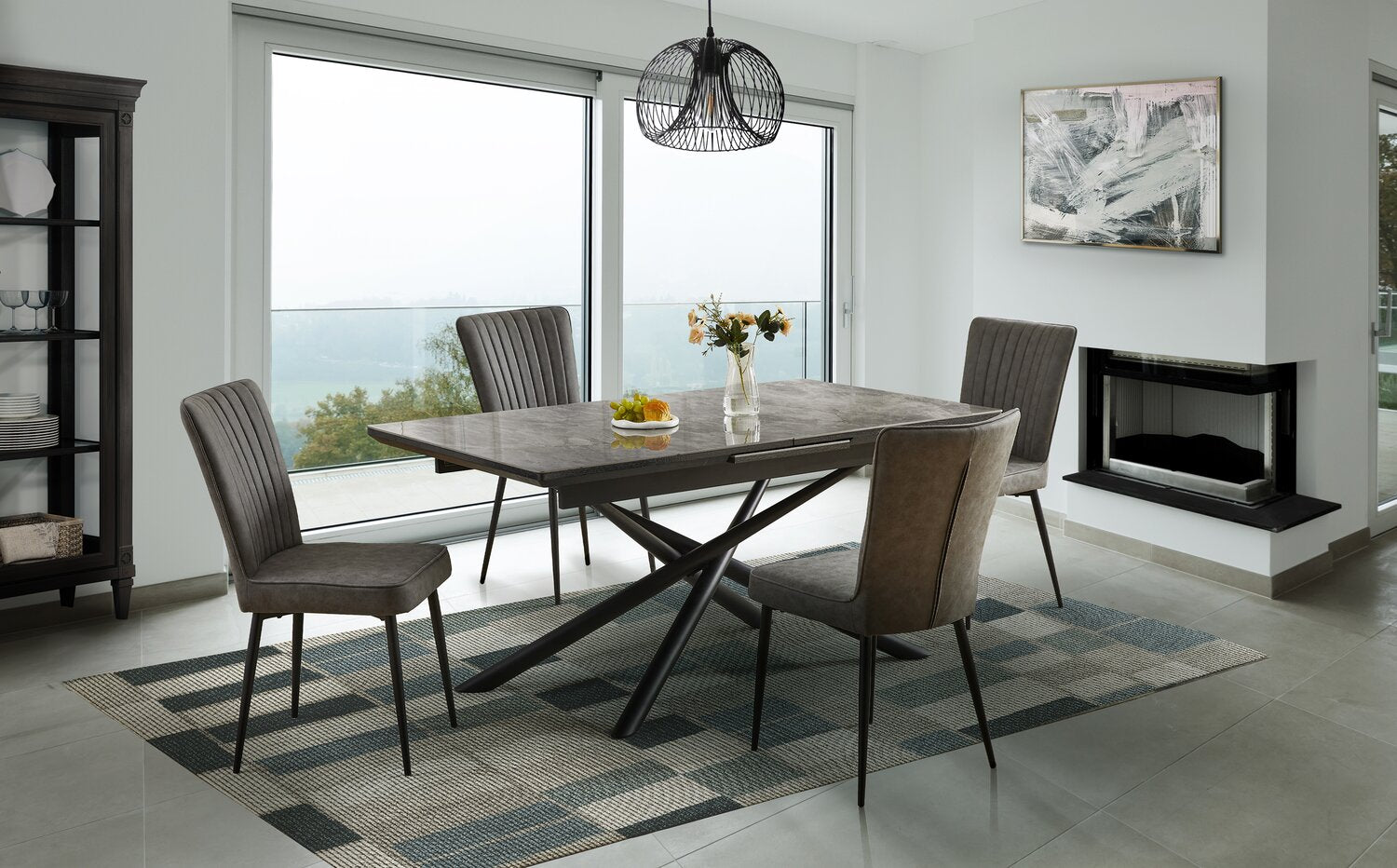 Tavo Dining Chair with Microfibre Polyester Fabric, Metal - Grey