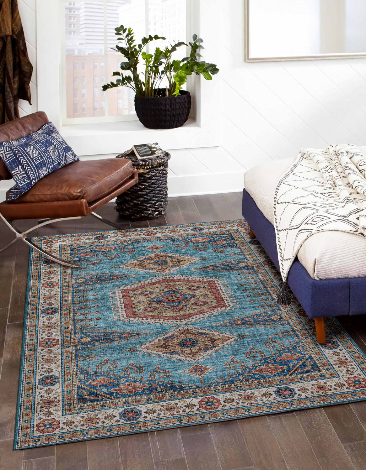 Tracy Traditional 6'0" x 9'0" Area Rug in Blue Indoor Area Rug