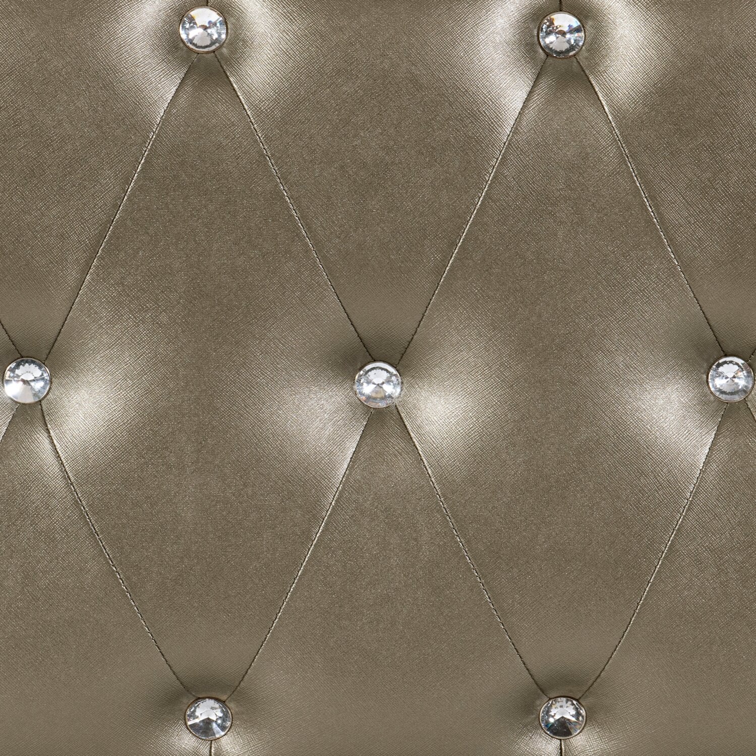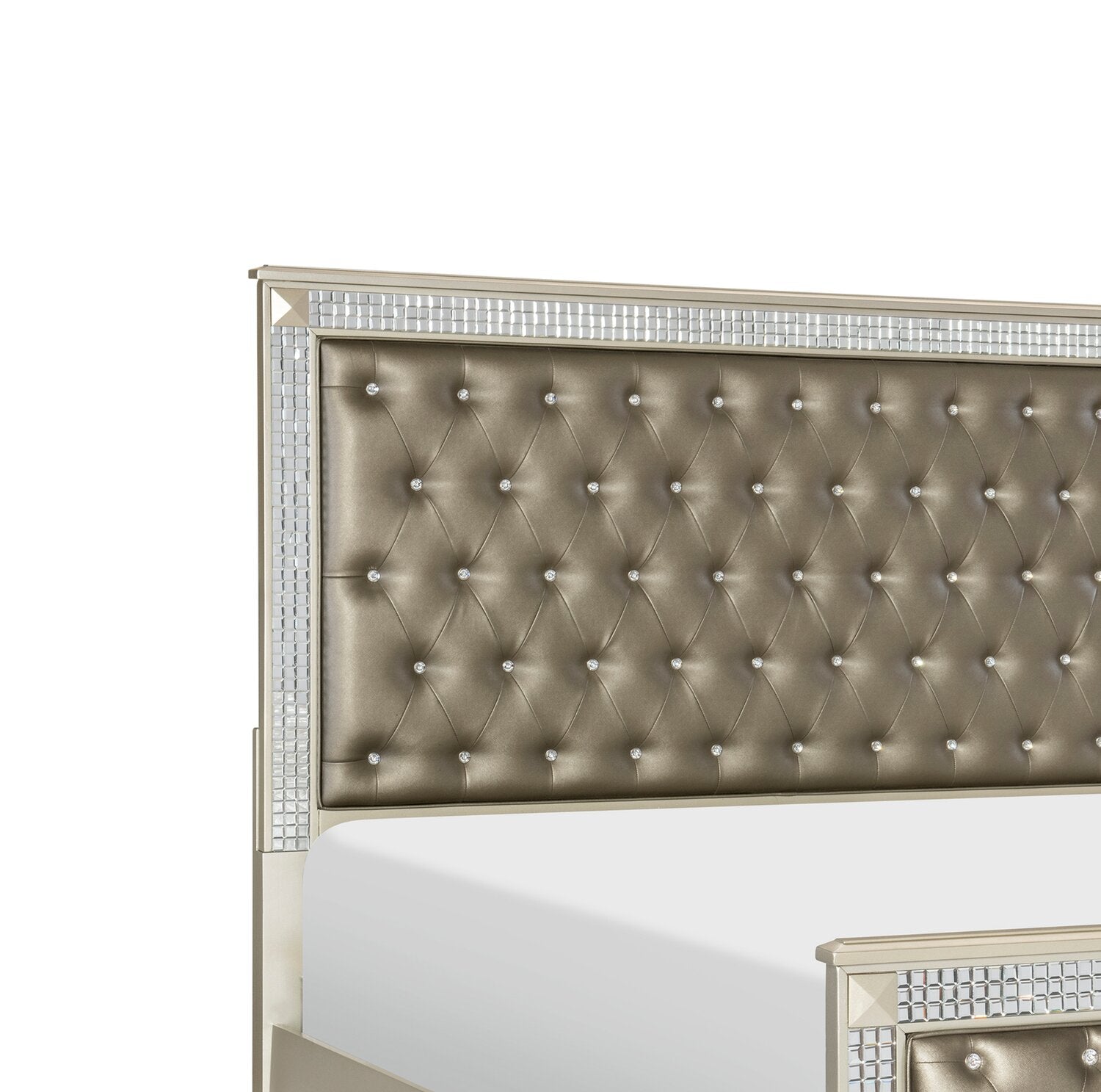 Tyra Panel Bed with Headboard & Frame, Glam, Vegan Leather, Button-Tufted, Champagne - King Size