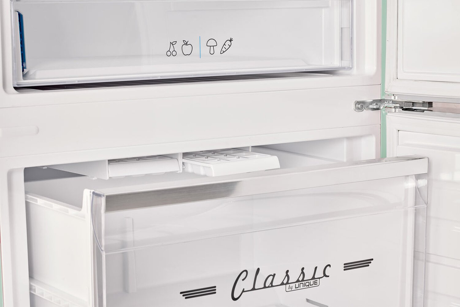 Retro Styled Top Freezer Refrigerator: Adjustable Glass Shelves: Frost-Free Cooling: Efficiency Modes: ENERGY STAR® Certified: Wine Rack Storage: |