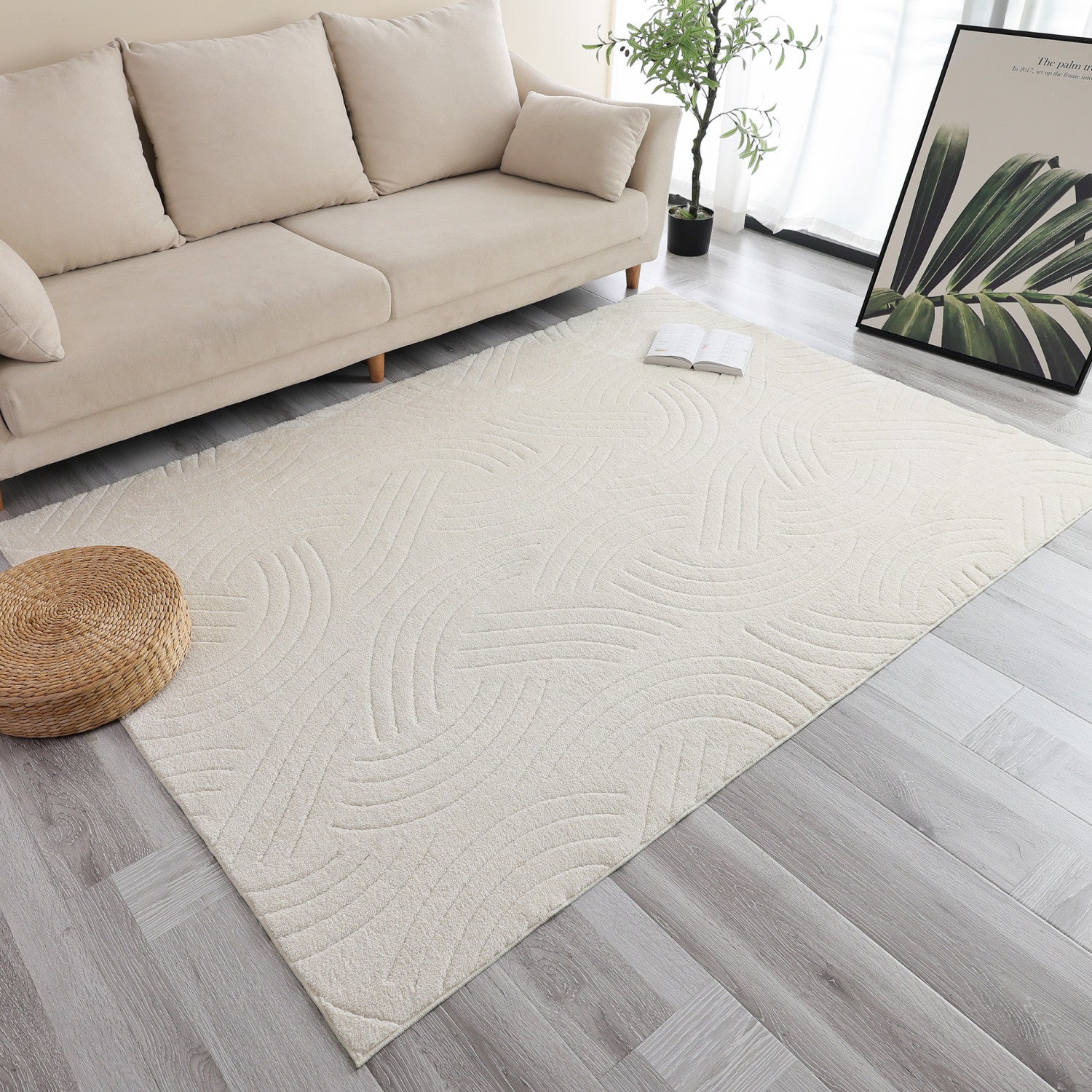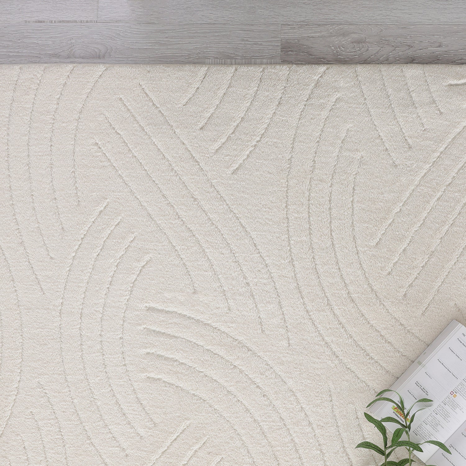 Fall in love with the perfect blend of comfort and convenience—our machine washable, non-slip, super soft shag area rug is made for modern living. With an irresistibly soft touch underfoot and a timeless design that effortlessly complements any space, this cream abstract crescent style carpet is the perfect decor for your living room, bedroom, nursery or dining area.