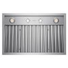 The Victory Q5 comes with mechanical rotary switches, making this range one of our most reliable models. Designed, assembled, and certified in Canada for long lasting, problem free service. We offer a 5 year parts warranty on this model. This model can be used with a standard 6" duct (600CFM) or an 8" duct (750CFM) for a quieter and more efficient operation. Air discharge direction is top vented but we also offer a back vent option for direct rear exhaust. Most insert range hoods are shallow and don't cover your cooktop effectively, but we designed the Victory Q5 19" deep for efficiency and effective coverage over your burners.