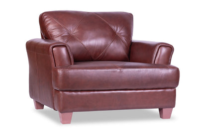 Make your living space look fantastic with this cool and dapper Vita chair. Covered from edge to edge in 100% top-grain genuine leather, this piece features a brown-coloured finish to refresh your home. A high-density foam cushion is wrapped with plush Dacron® fibres so your seat feels cozy the instant you sit down. Meanwhile, a blend of robust woods in the frame and feet provide support for plenty of movie nights and friendly chats. With a diamond stitching pattern to highlight the clean lines, this Vita brown chair is a stylish must-have for any room.