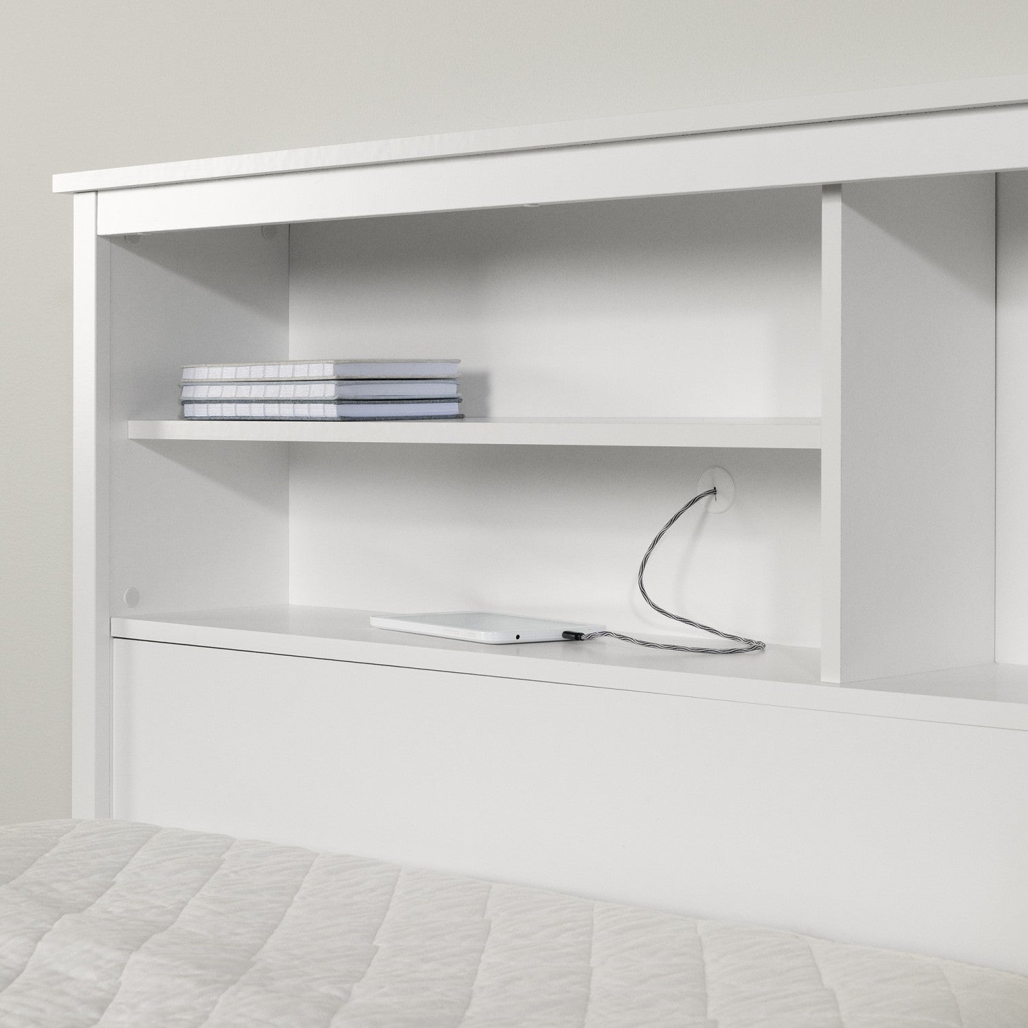 A pair of unisex components for a kid’s bed. This neutral, practical duo is great for creating an original, enchanting decor for your little treasure’s bedroom. The platform for the bed, with its handleless drawers and rounded lines, can work in any decor. The bookcase headboard is also timeless, with its straight lines and three open compartments. So you can personalize this furniture with adorable bedding, soft throw pillows, and your kid’s favorite stuffed toys. This bed will be a part of your child’s sleeping life for many years! Storage within easy reach it’s a happy day when you can add storage in your little poppet’s bedroom without taking up more floor space! The combination of three drawers in the bed base and three compartments in the bookcase headboard gives you valuable spaces for putting away clothes, toys, blankets, and books. Get this ingenious bundle and you could even do without a chest or night stand!