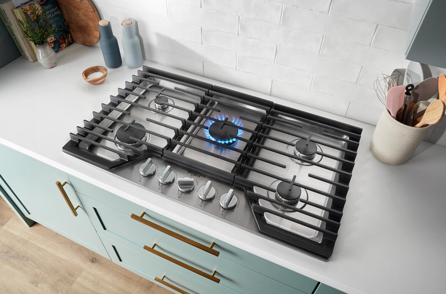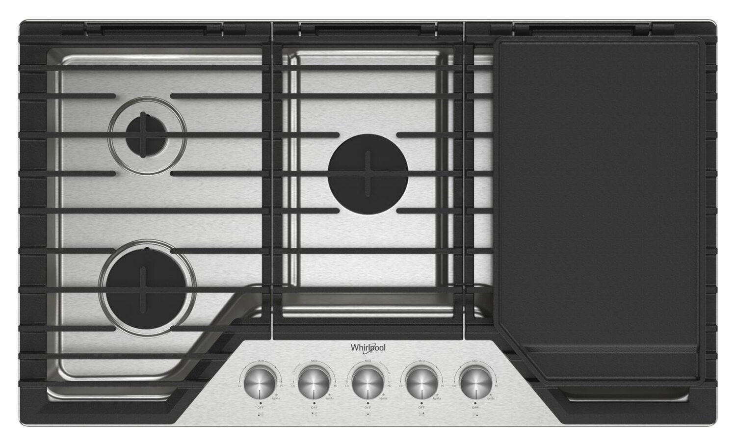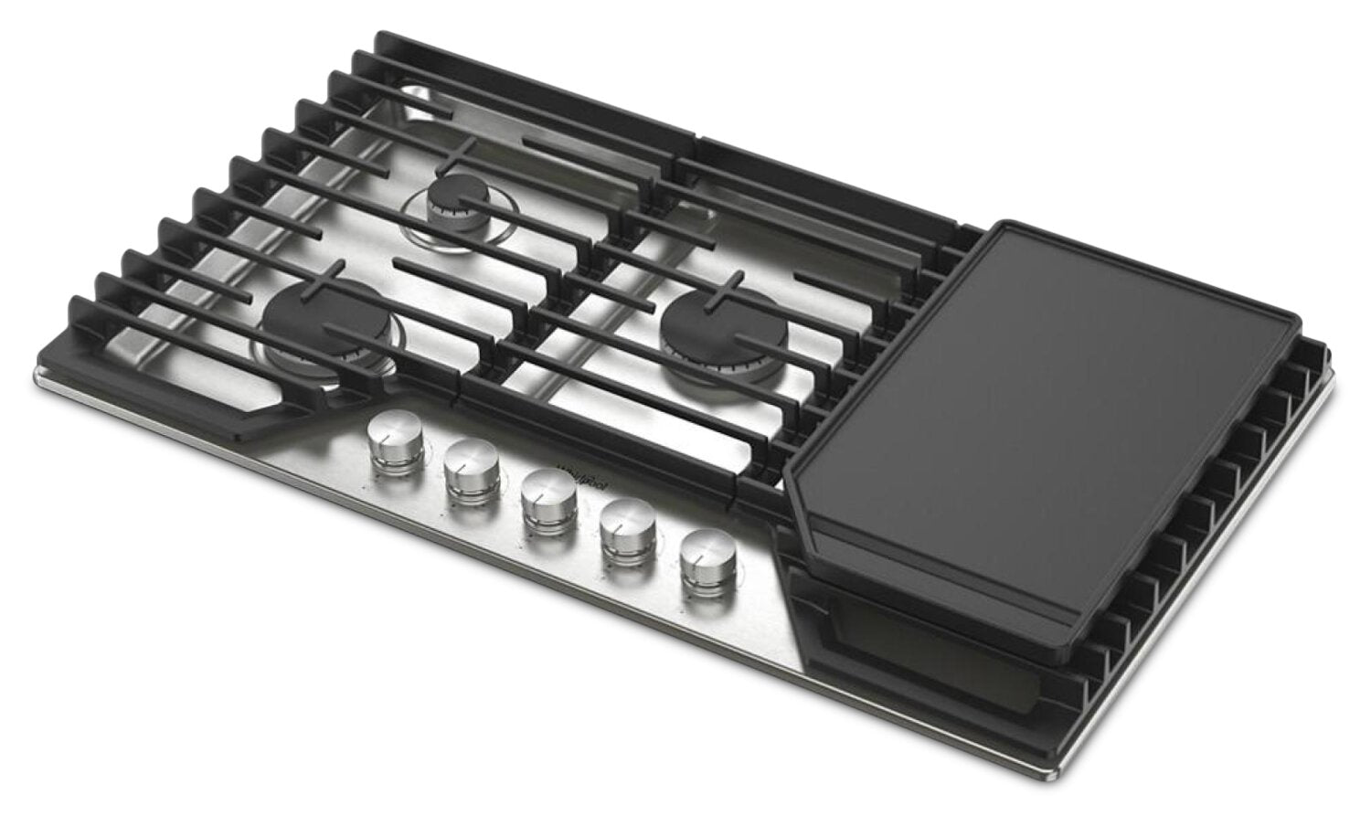 Whirlpool 36" Gas Cooktop with 2-in-1 Hinged Grate to Griddle - WCGK7536PS