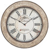 Find yourself running late more often than you’d like" This wood wall clock is the saviour you’ve been waiting for. Large, bold roman numerals quickly and efficiently call out the time, even when viewed from across the room. The robust wood frame is finished in a distressed, white-washed paint, purposefully aged to match the vintage-inspired fleur-de-lis motif. A bold, chocolate-brown edging detail gives this clock a visual punch and creates an eye-catching contrast.
