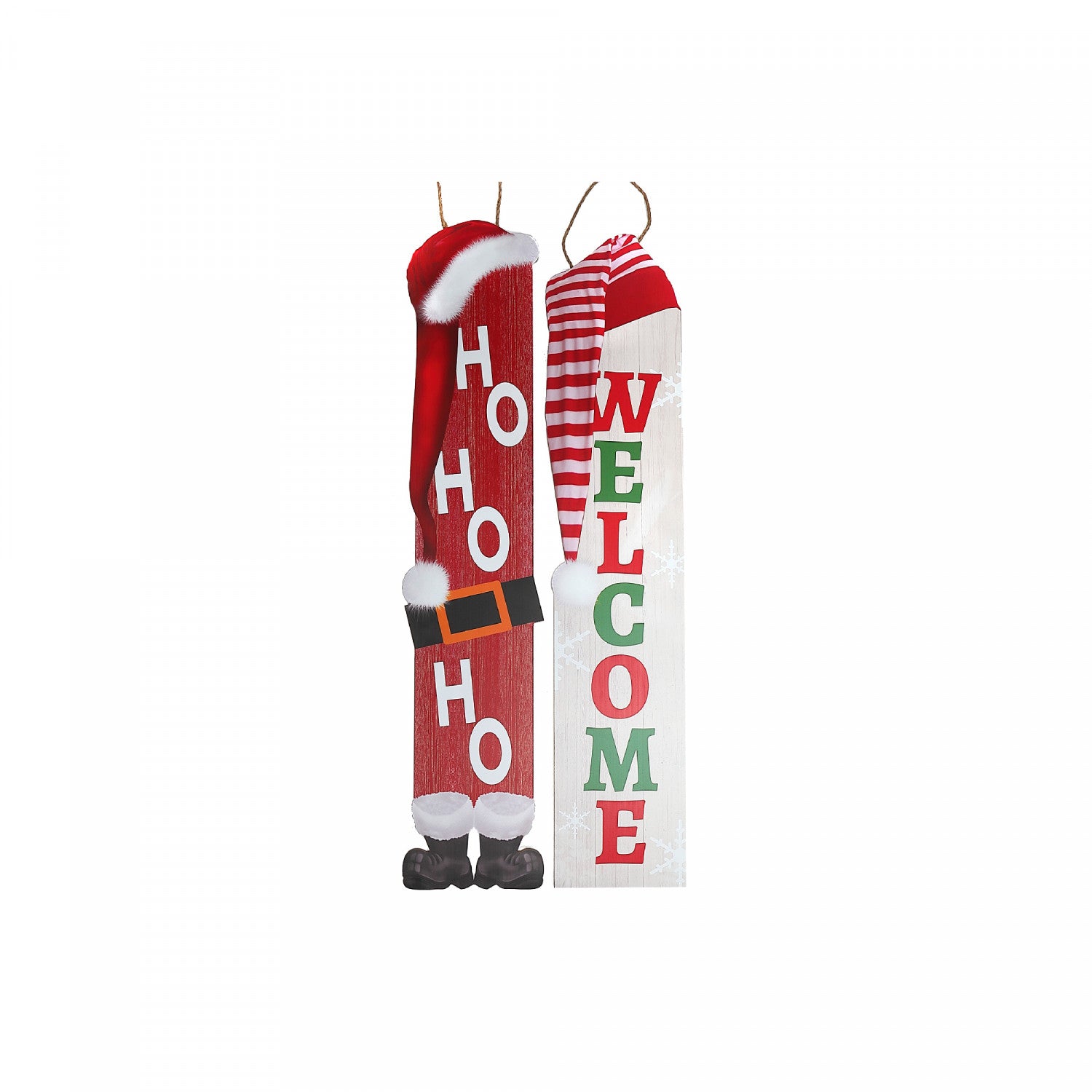 Wooden 'Welcome' 'Ho ho ho' Porch Sign - Set of 2