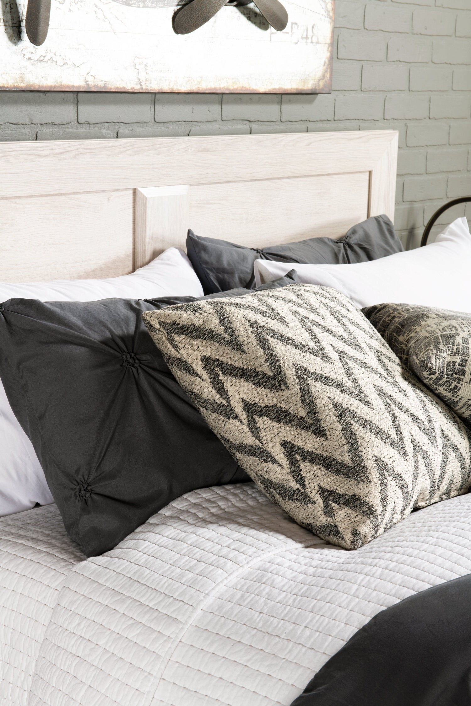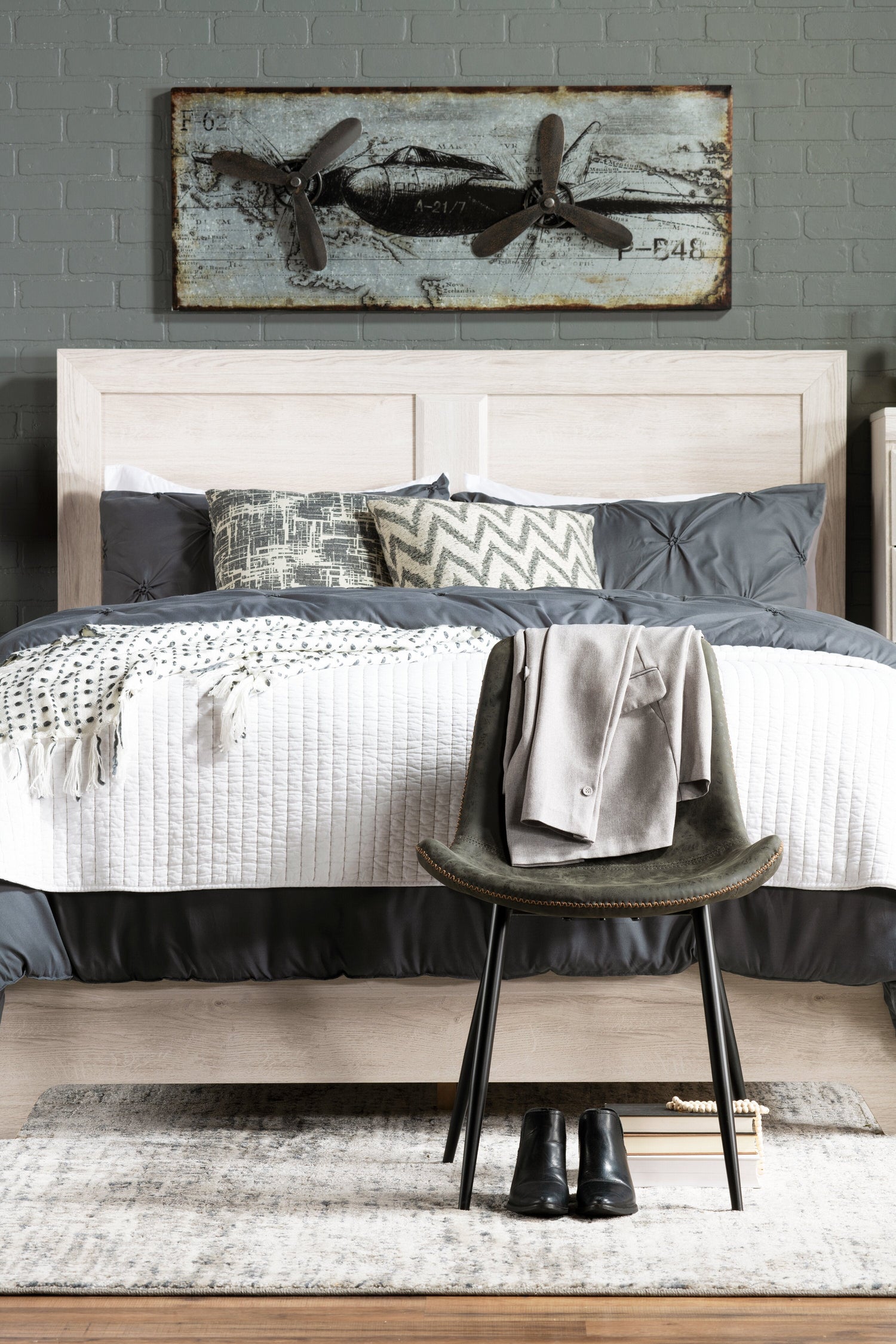 Riley Panel Bed with Headboard & Frame for Kids, Made in Canada, Grey - Full Size