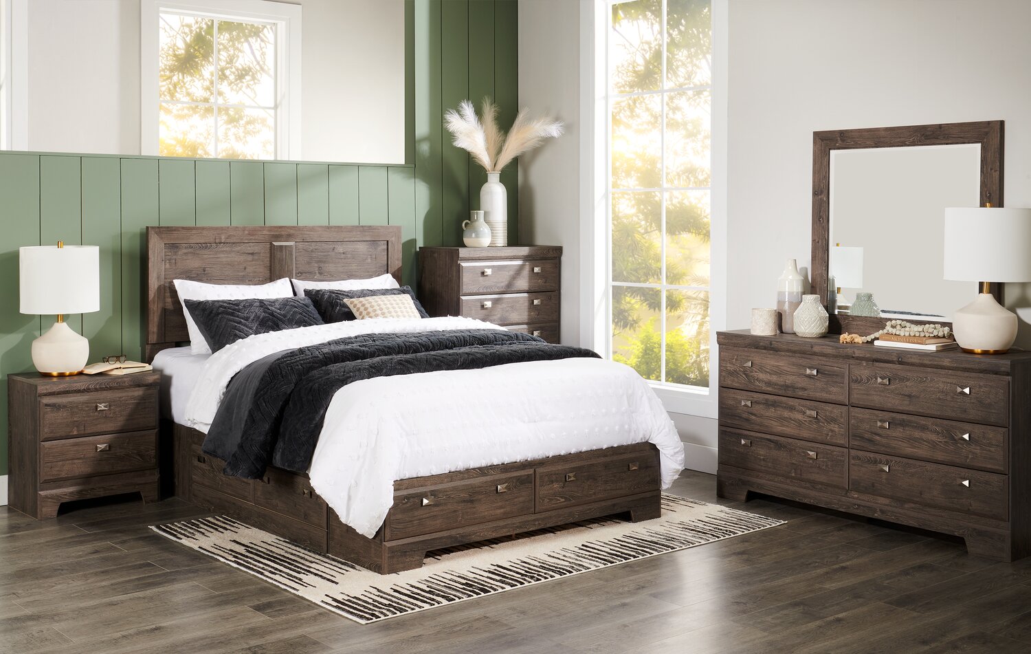 Arbor 6pc Bedroom Set with Panel Bed, Dresser, Mirror & Nightstand, Driftwood White - Queen Size